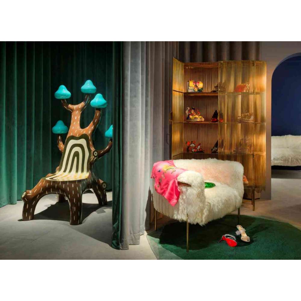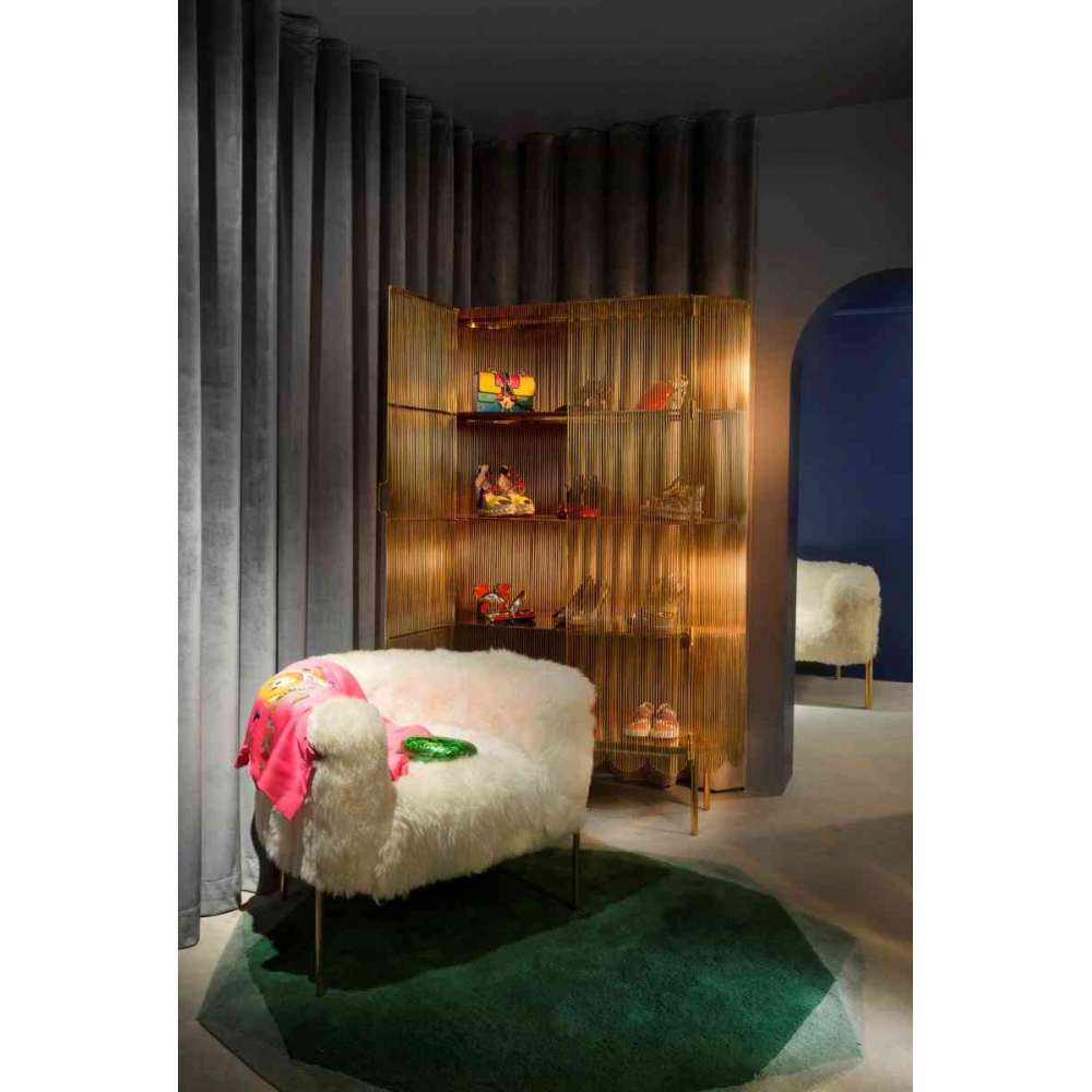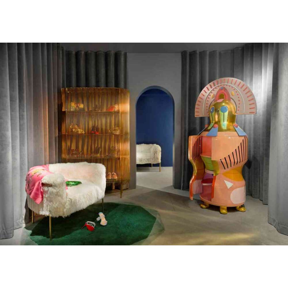 Artefatto Design Studio zaprojektowało piękną kolekcję mebli i dywanów w miękkiej, falistej owczej skórze spiętej złoconymi ramami. To obietnica luksusu na miarę rodziny królewskiej.