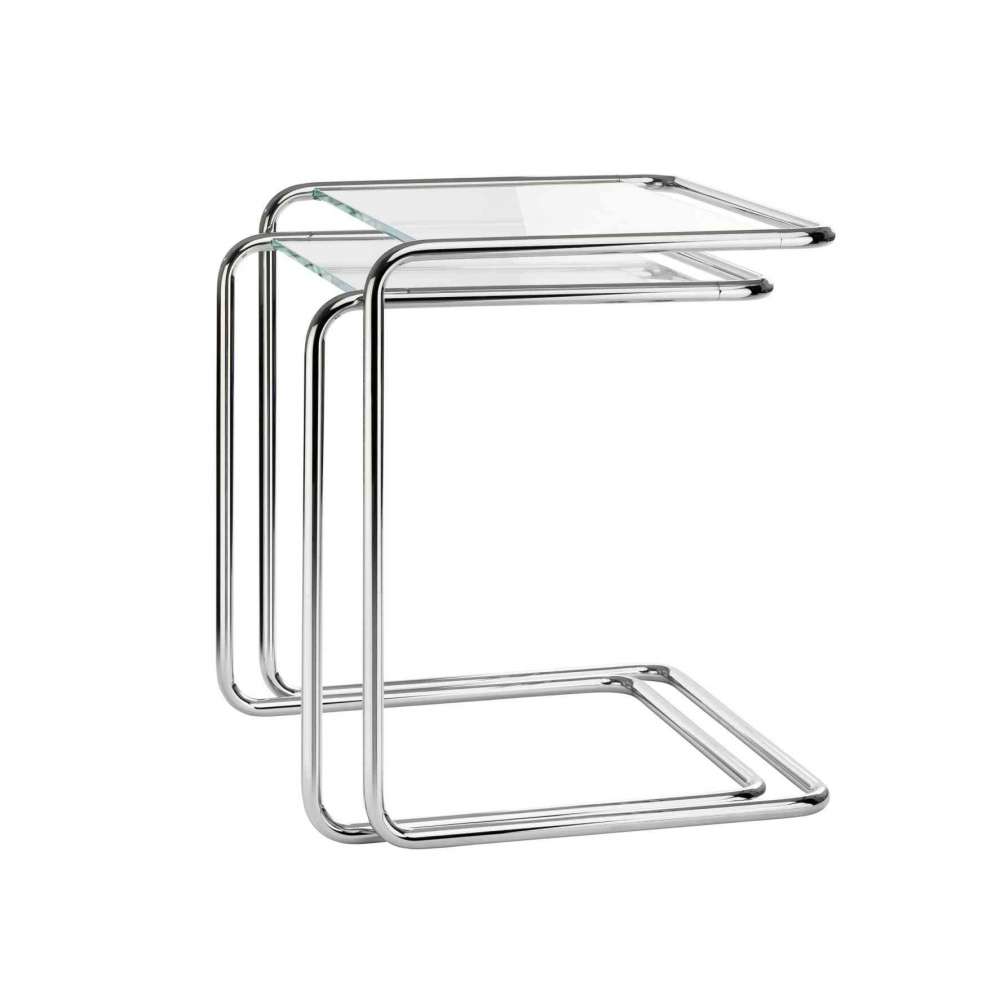 Elegancki, elastyczny i odpowiedni do różnych zastosowań. Swoimi wymiarami zestaw stołowy B 97 przypomina stół gniazdowy Marcela Breuera B 9. Jego zmieniona konstrukcja ma jednak praktyczną zaletę: dzięki otwarciu z jednej strony stoły można przeciągnąć przez krawędź sofy, fotel lub łóżko. W przeciwnym razie można je wygodnie wcisnąć jeden na drugi. Projekt Thonet z 1933 roku należy do klasyki mebli z rurek stalowych.