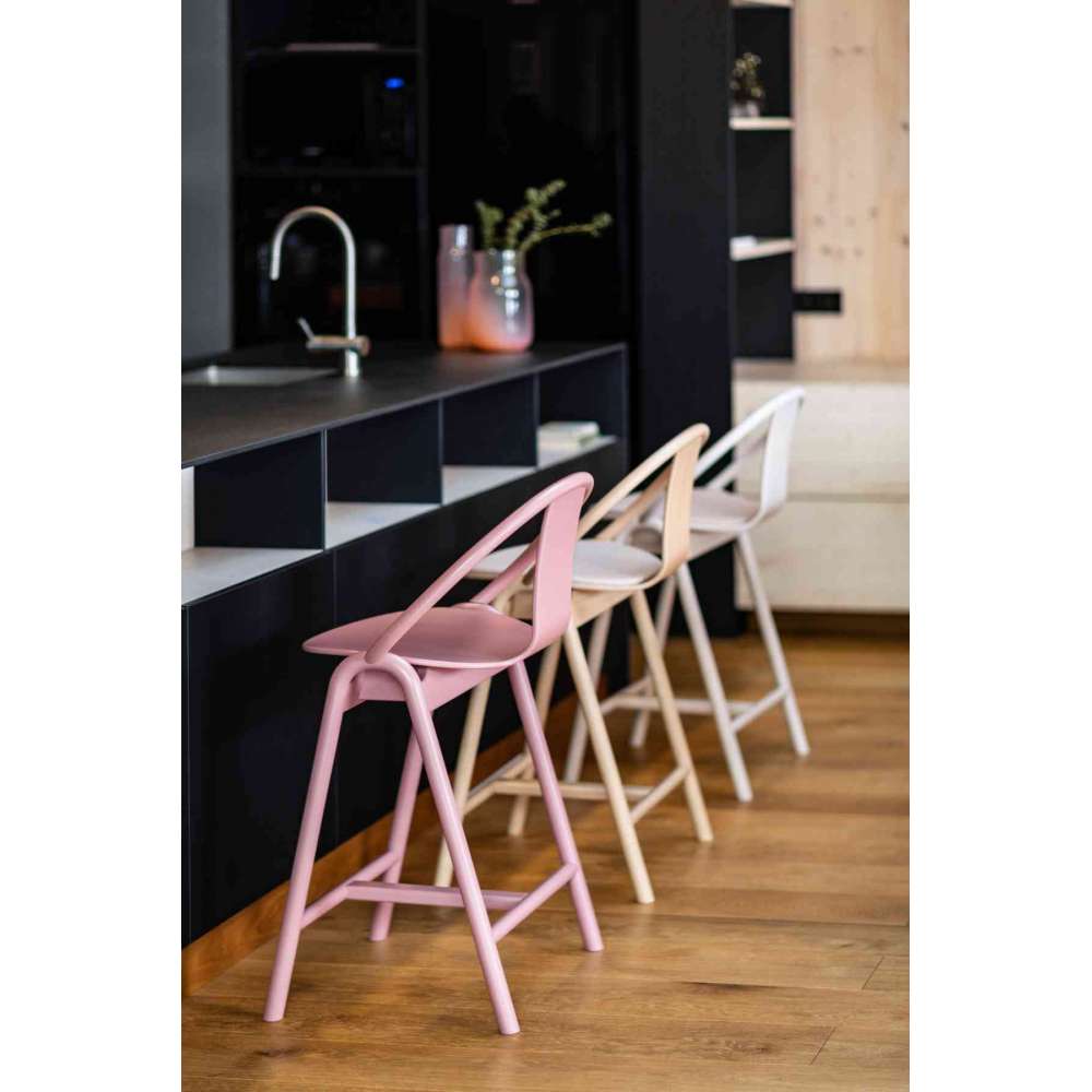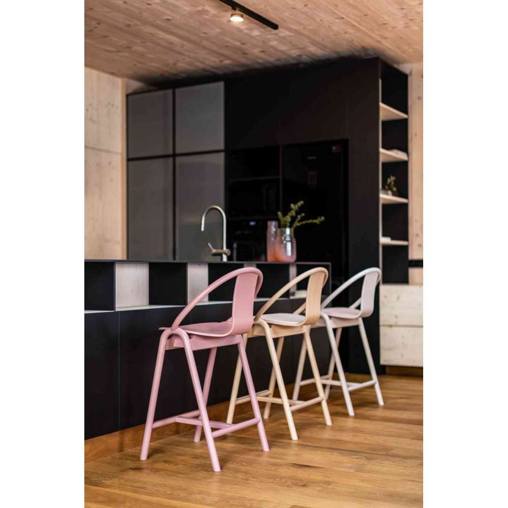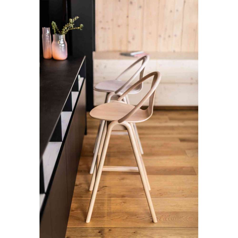 Stołek dostępny w dwóch wysokościach, drewno dostępne w różnych wykończeniach.