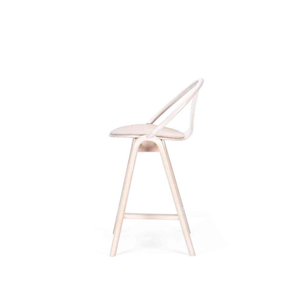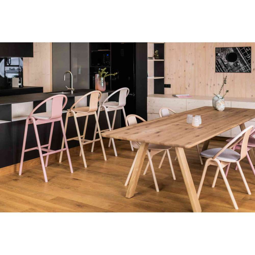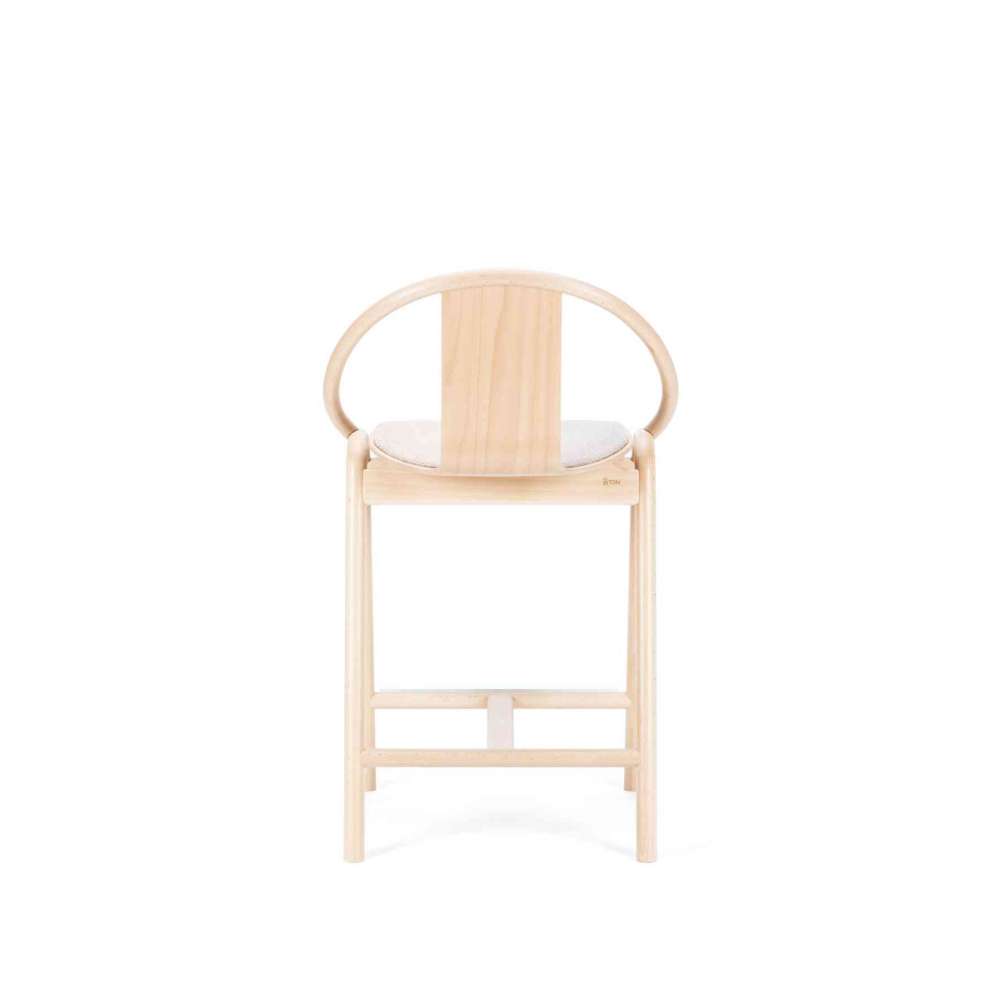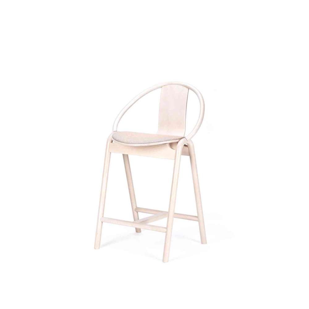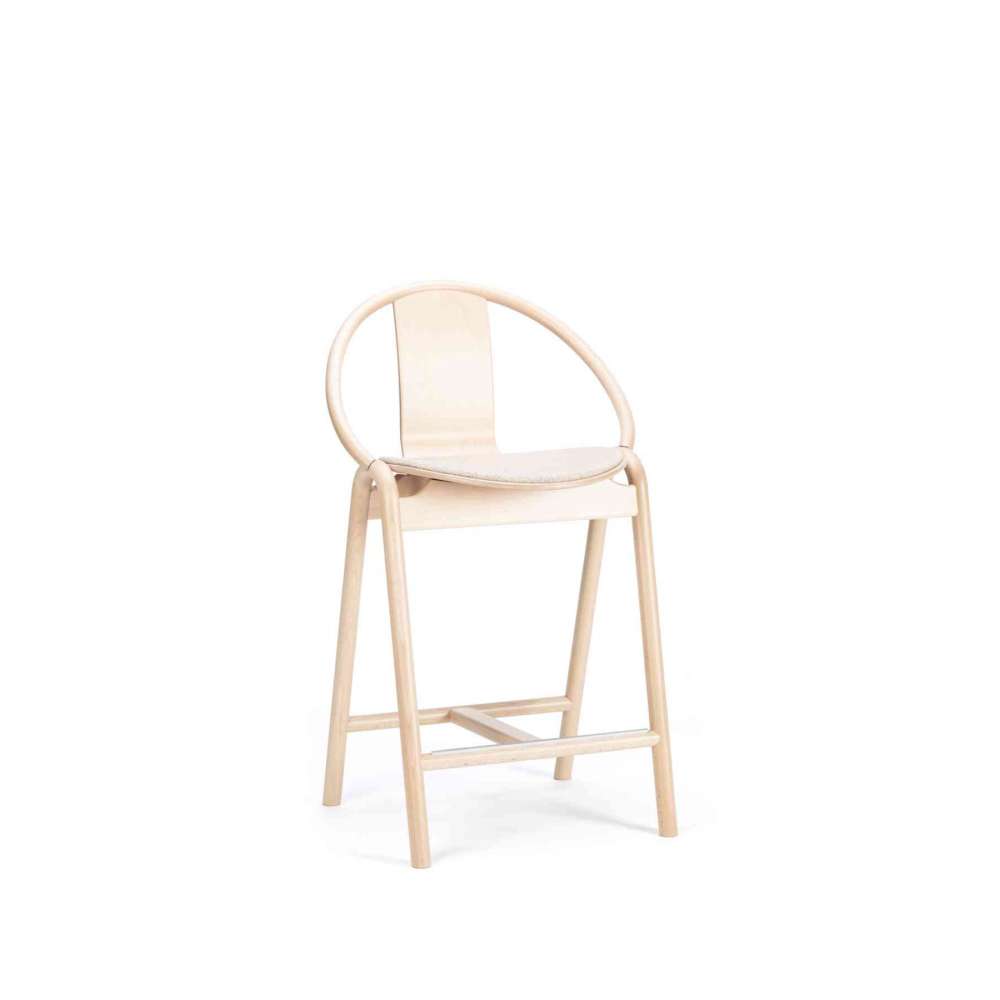 AGAIN to drewniany hoker z podnóżkiem. Posiada tapicerowane siedzisko. Może być pokryty tkaniną lub skórą. Dzięki wieloletniej współpracy z ROHI, firmą tworzącą wełniane tkaniny premium, TON wprowadza w tym roku trzy odcienie nowej tkaniny obiciowej Milkyway. Wełniana tkanina przedstawia lśniącą Drogę Mleczną, która powtarza się co trzy metry. Rezultatem jest wzór tapicerki, który różni się nieznacznie w zależności od krzesła i jest najbardziej efektywny, gdy jest używany na większej grupie krzeseł.