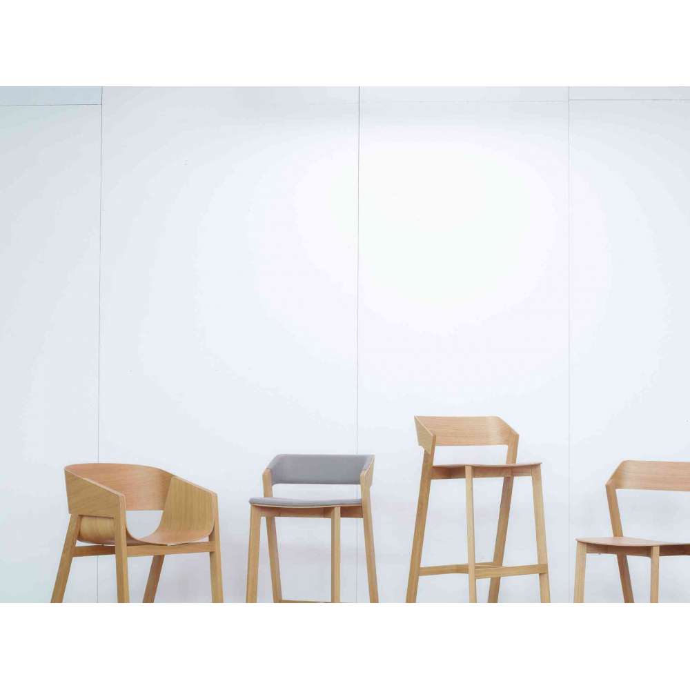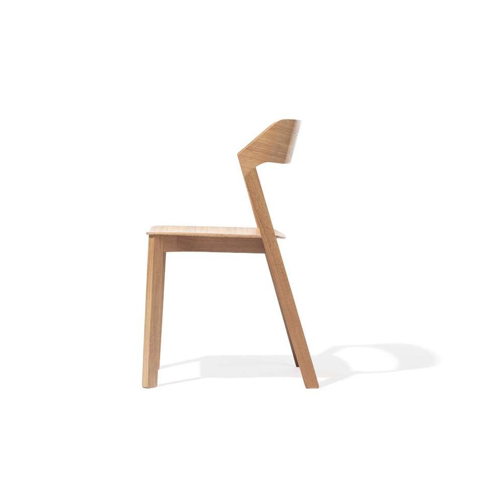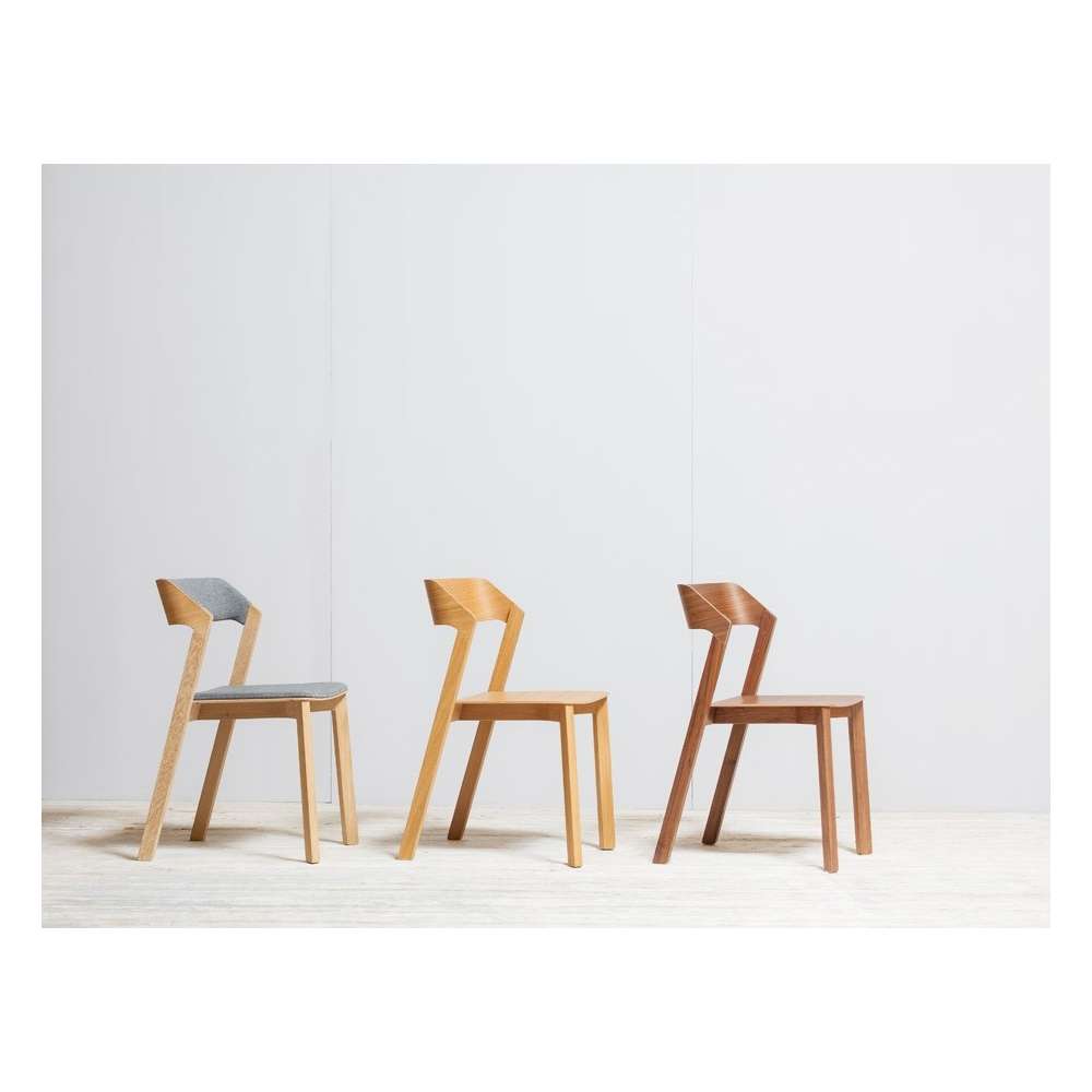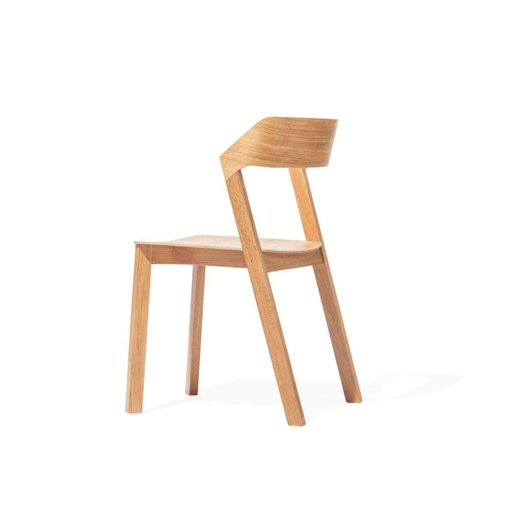 Krzesło Merano łączy dolną konstrukcję z litego drewna z harmonijnymi kształtami giętej sklejki w siedzisku i oparciu. Dzięki zastosowanej technologii produkcji jest niezwykle lekki i nie zawiera żadnych śrub ani elementów metalowych.