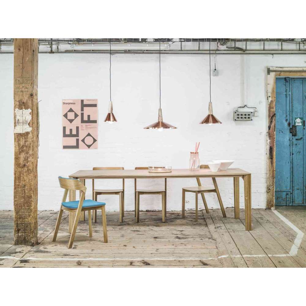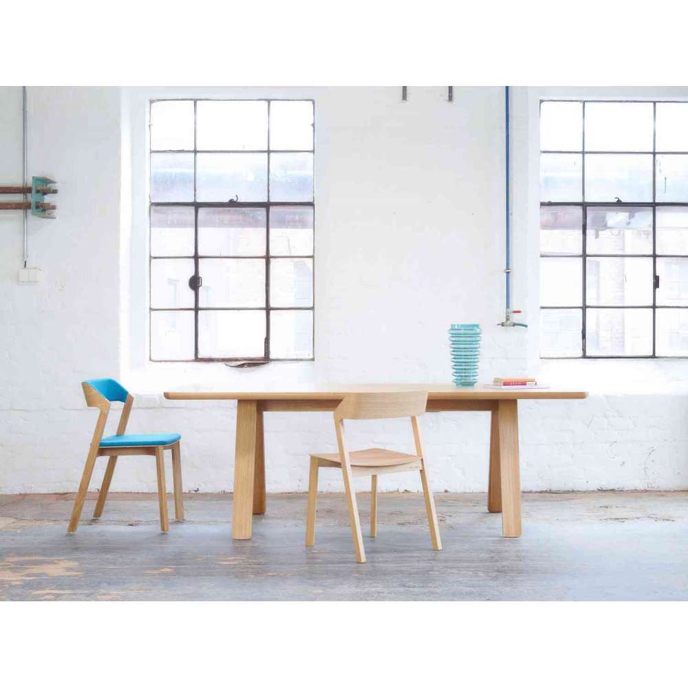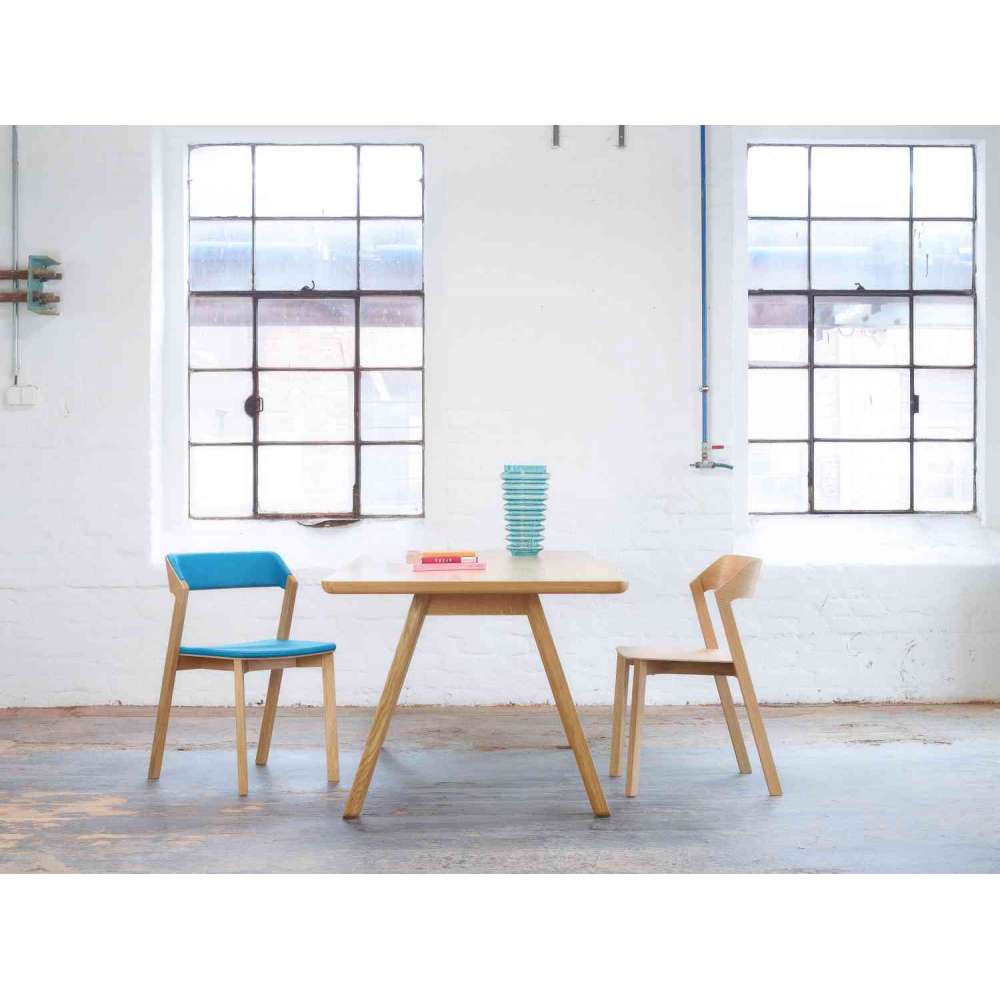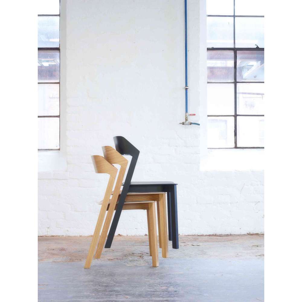 Krzesło Merano łączy dolną konstrukcję z litego drewna z harmonijnymi kształtami giętej sklejki w siedzisku i oparciu. Dzięki zastosowanej technologii produkcji jest niezwykle lekki i nie zawiera żadnych śrub ani elementów metalowych.