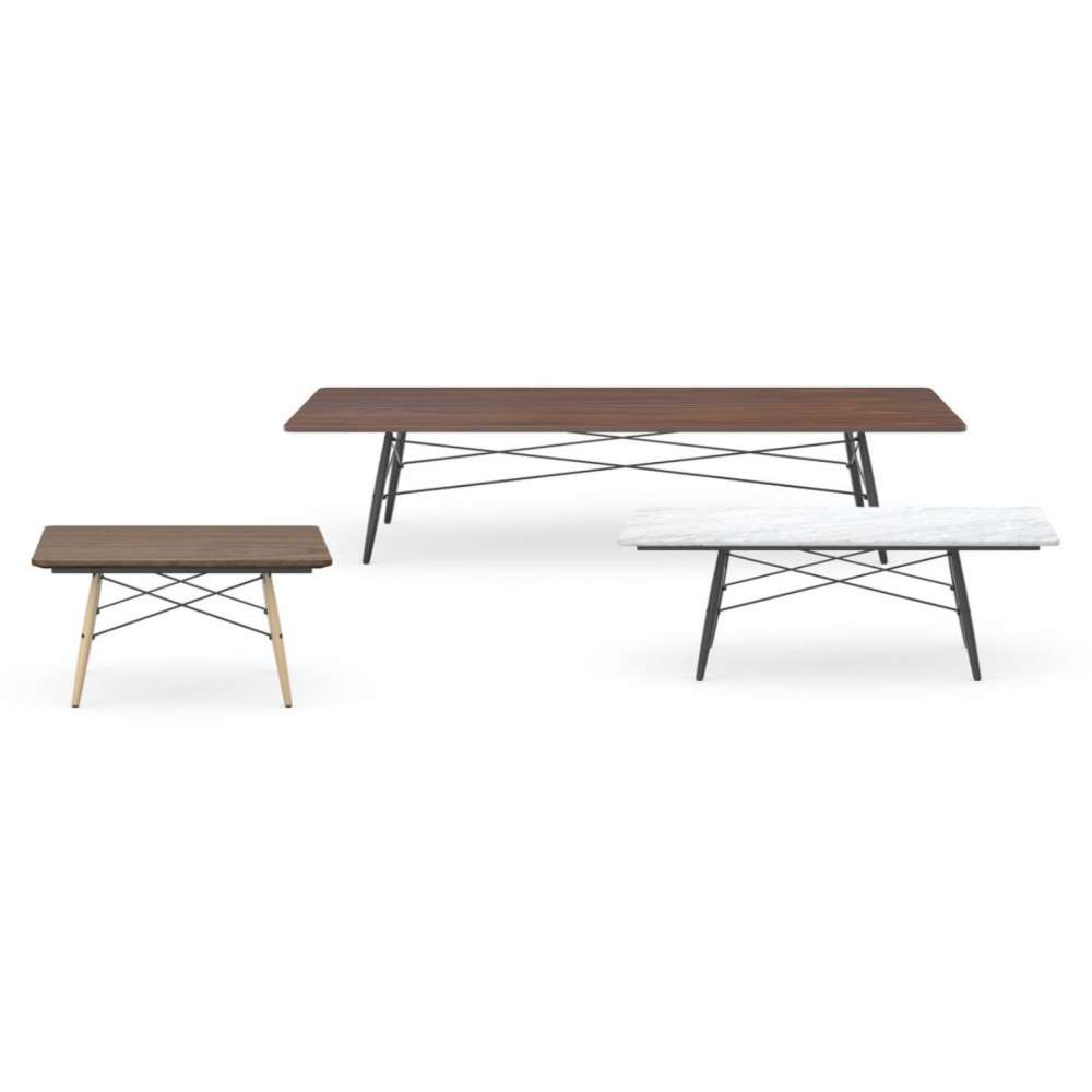 Reedycja stolika kawowego Eames, opracowana przez firmę Vitra we współpracy z Eames Office, przywołuje ducha wczesnych, jednorazowych mebli: ten wysokiej jakości stolik kawowy wykonany z wykwintnych materiałów jest zarówno cennym przedmiotem, jak i użytkowym wyposażeniem. Kwadratowe lub prostokątne blaty wykonane są z forniru palisander, marmuru lub litego orzecha amerykańskiego. Podstawa łącząca drewniane nogi z metalowymi poprzeczkami zapewnia stabilną podbudowę i podkreśla dyskretną elegancję stolika kawowego Eames.