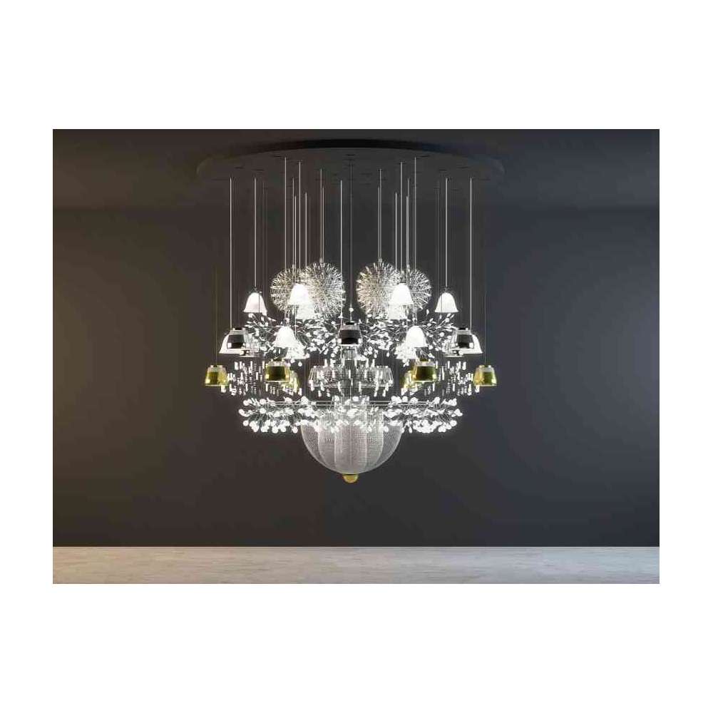 Mega Chandelier to stworzona na zamówienie kompozycja świetlna z wyjątkowej selekcji lamp z kolekcji Moooi, eksplozja piękna i kreatywności w klasycznej formie żyrandola. To tyle na raz: oszałamiająca kompozycja, wyreżyserowane dzieło sztuki, genialna instalacja, umiejętne połączenie różnych stylów i uzupełniających się projektów. Biorąc pod uwagę wielką scenę, Mega Żyrandol jest idealnym bohaterem, który przyciągnie wszystkie oczy do swojej aury. Z hukiem generuje wspaniały spektakl piękna i splendoru!