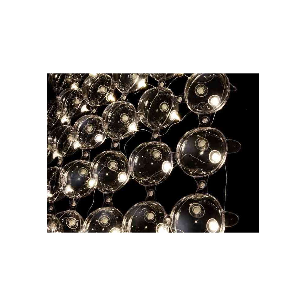 BUBBLES Divider może stworzyć niezwykły efekt świetlistej ściany. Ostateczny efekt zależy od tego, czy umieścimy go - blisko ściany, czy w przestrzeni. Części Bubbles® to kuliste moduły, które są połączone w celu utworzenia świetlistej siatki, która jest elastyczna, lekka i elastyczna. Podstawową formą stworzoną w ten sposób jest rodzaj ekranu lub przegrody.