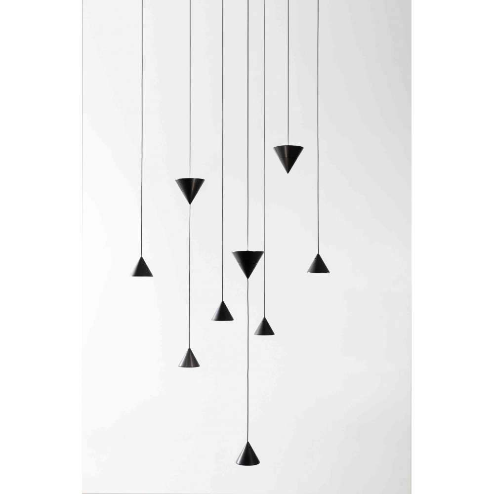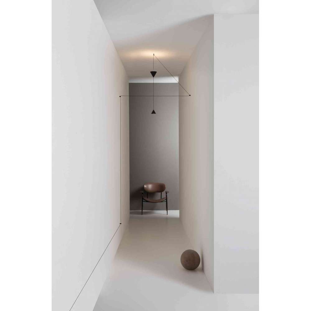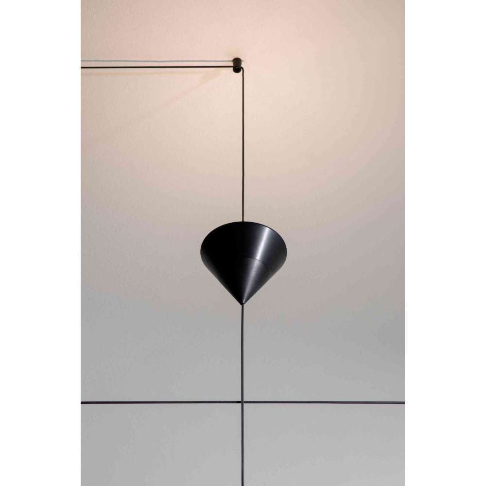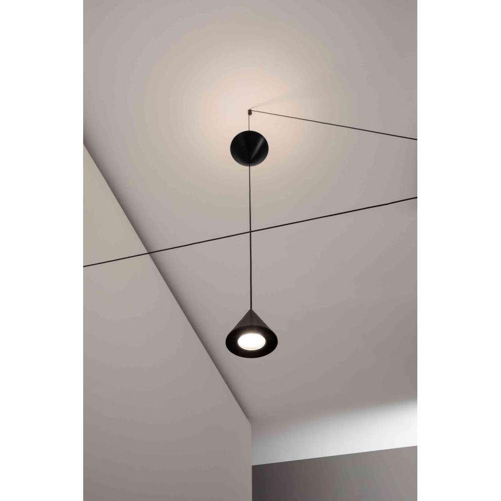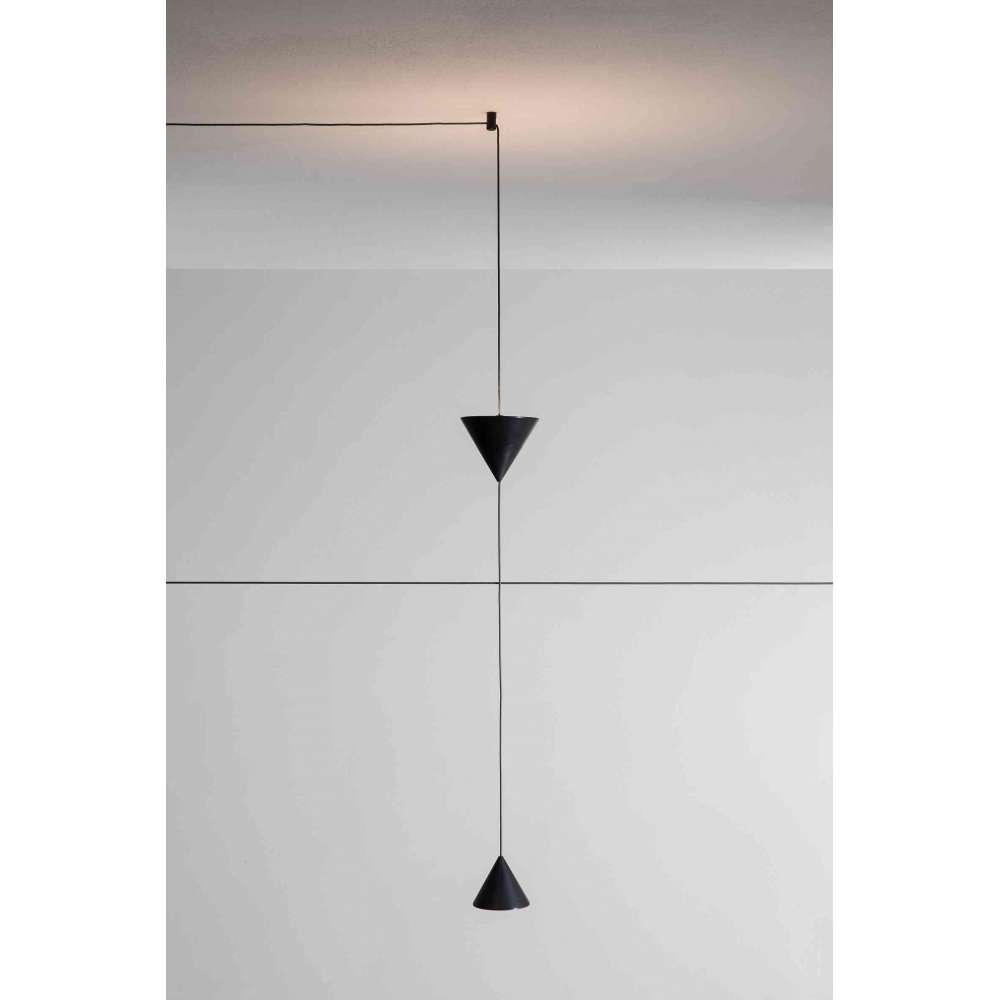 Na kablu można zainstalować dwa stożki. Mniejszy stożek kieruje światło w dół, podczas gdy większy stożek kieruje światło w górę. Stożki można rozstawiać i podwieszać do sufitu lub ściany za pomocą specjalnych aluminiowych odchylaczy w kolorze czarnym.