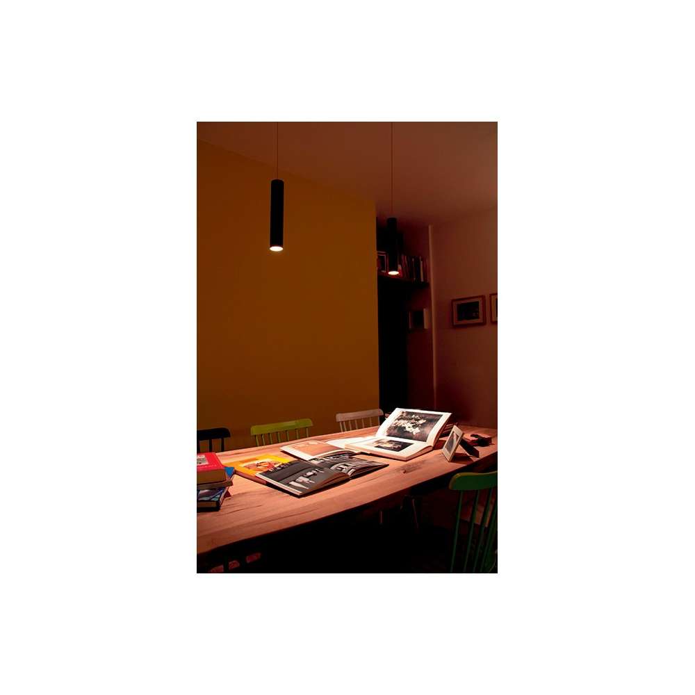 Zawieszony do zastosowań wewnętrznych; montaż natynkowy (sufitowy) z rozetą sufitową; 6W; 230Vac; Strumień świetlny u źródła: 460 lm (3000 K); Dostarczony strumień świetlny: 285 lm (3000 K, 24°); 1 wielochipowa dioda LED zasilania; kolor LED: 2700K, 3000K, 4000K; Optyka: 17°, 24°, 58°; korpus z aluminium, rozeta sufitowa ze stali, ekran z pleksi; Wykończenia: czarny, czysty pomarańczowy, jasna kość słoniowa, biały, zieleń resedowa, błękit capri, chrom; wbudowany zasilacz; w zestawie kabel PVC 2,50 m, FROR 2x0,75 Ø5,4 mm; Stopień ochrony: IP40; Wersje DALI i 1-10V dostępne na zamówienie; Projekt: Cibicworkshop; Temperatura pracy: 0°C — +45°C; Maksymalna temperatura urządzenia: 40°C (Ta 25°C); Bezpieczeństwo fotobiologiczne: grupa ryzyka 1 zgodnie z EN6 2471:2006; Klasa urządzenia: II; Waga: 800g; Wymiary: Ø55x300mm; Klasa efektywności energetycznej: A / A+ / A++