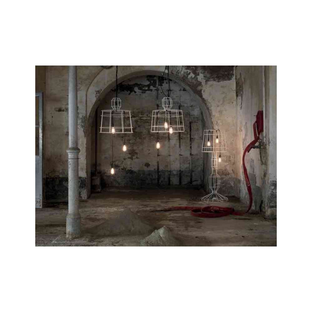 Sisma - lampa wisząca maks. 3x70w E27 energooszczędna W branży budowlanej żebrowany pręt zbrojeniowy jest niezbędnym elementem: centralnym elementem każdego budynku, wyjątkowo mocnym, odpornym na trzęsienia ziemi. Sylwetka kolekcji Sisma: zawieszenie i lampa podłogowa są obrysowane przez konstrukcję w żebrowanym zbrojeniu placu budowy. Kable elektryczne można owinąć wokół konstrukcji, dzięki czemu możesz zdecydować, ile źródeł światła i w jakiej pozycji chcesz je ustawić.Odbiorca: :