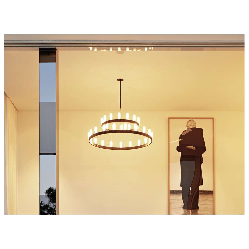 Podwójny żyrandol - lampa wisząca. Konstrukcja z szarego aluminium lub czarnego mosiądzu. Kable wiszące ze stali nierdzewnej. Dyfuzory z piaskowanego szkła borokrzemianowego.Zapisz się do naszego newslettera i otrzymuj oferty specjalne i rabaty dla stałych i nowych klientów! Wystarczy, że podasz nam swój adres e-mail i nie przegapisz już żadnej oferty!