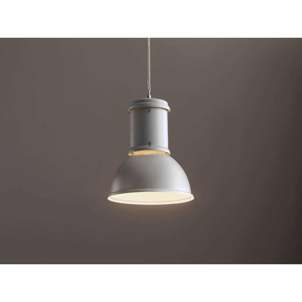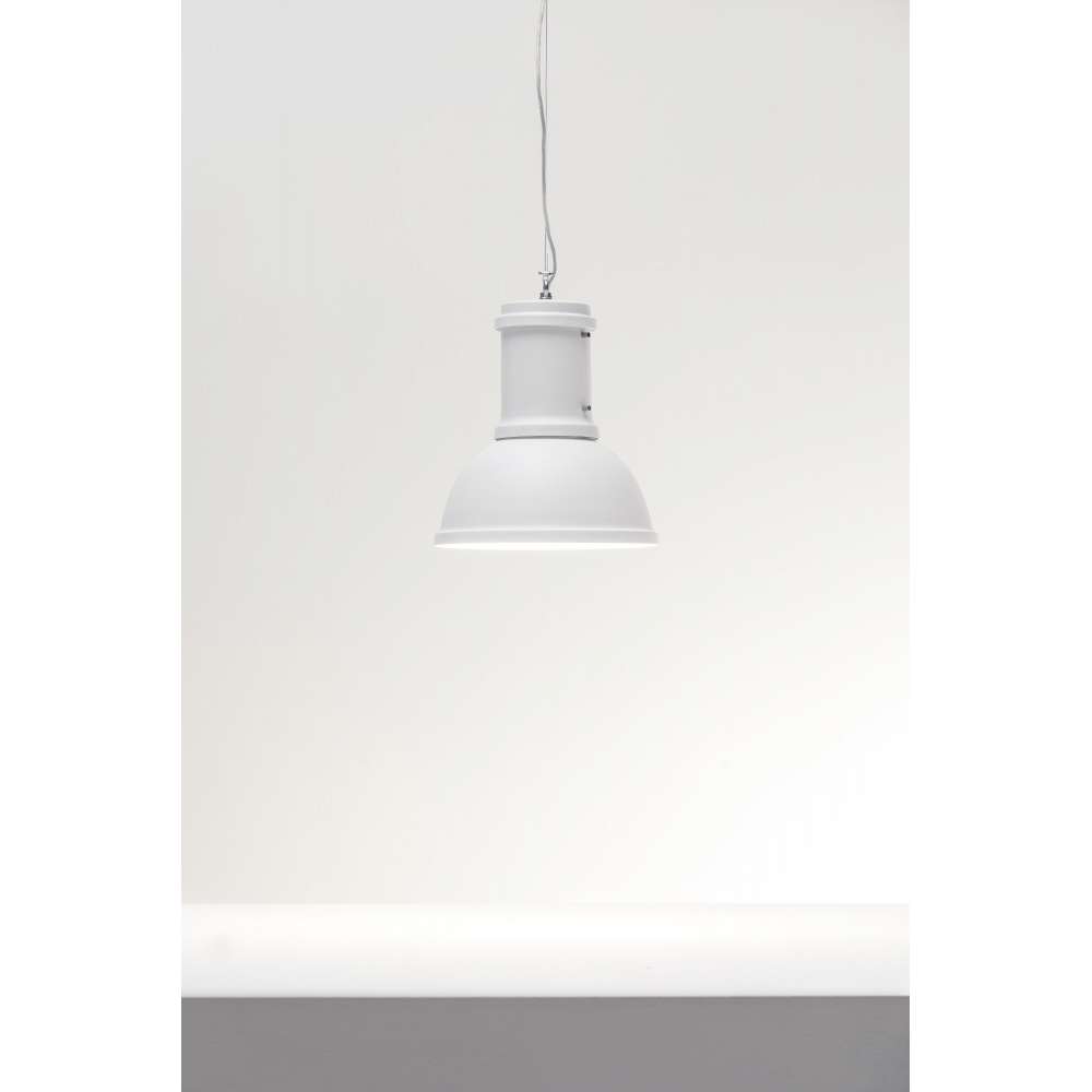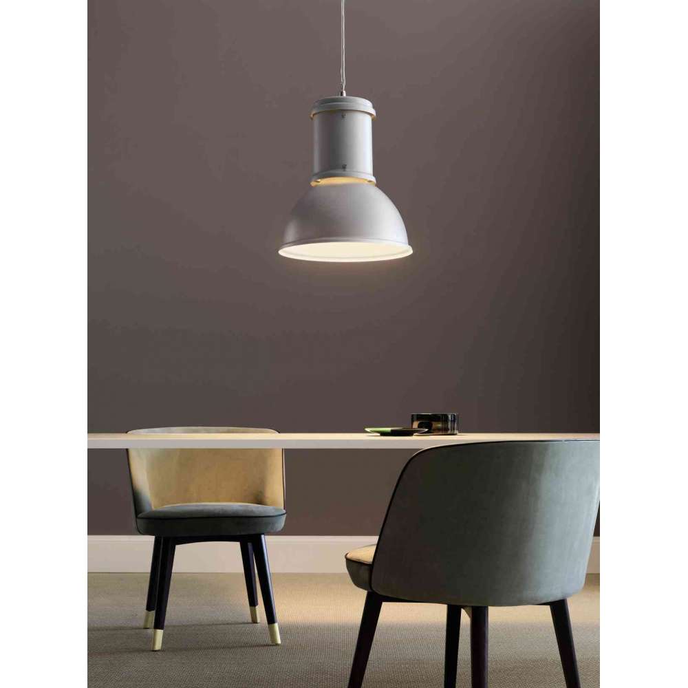 Lampara - Lampa wisząca. Konstrukcja z naturalnego aluminium lub chromowanego, od wewnątrz pomalowanego na biało odbłyśnika. Kable wiszące ze stali nierdzewnej.