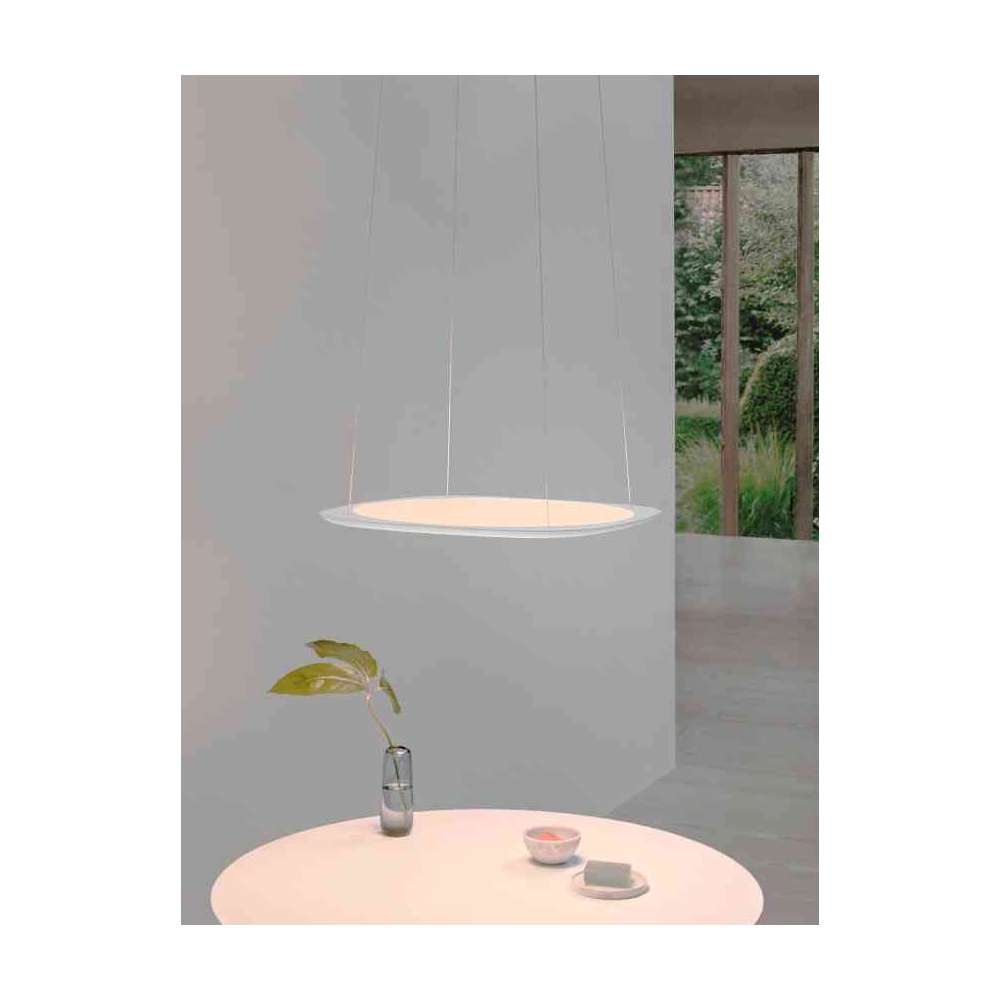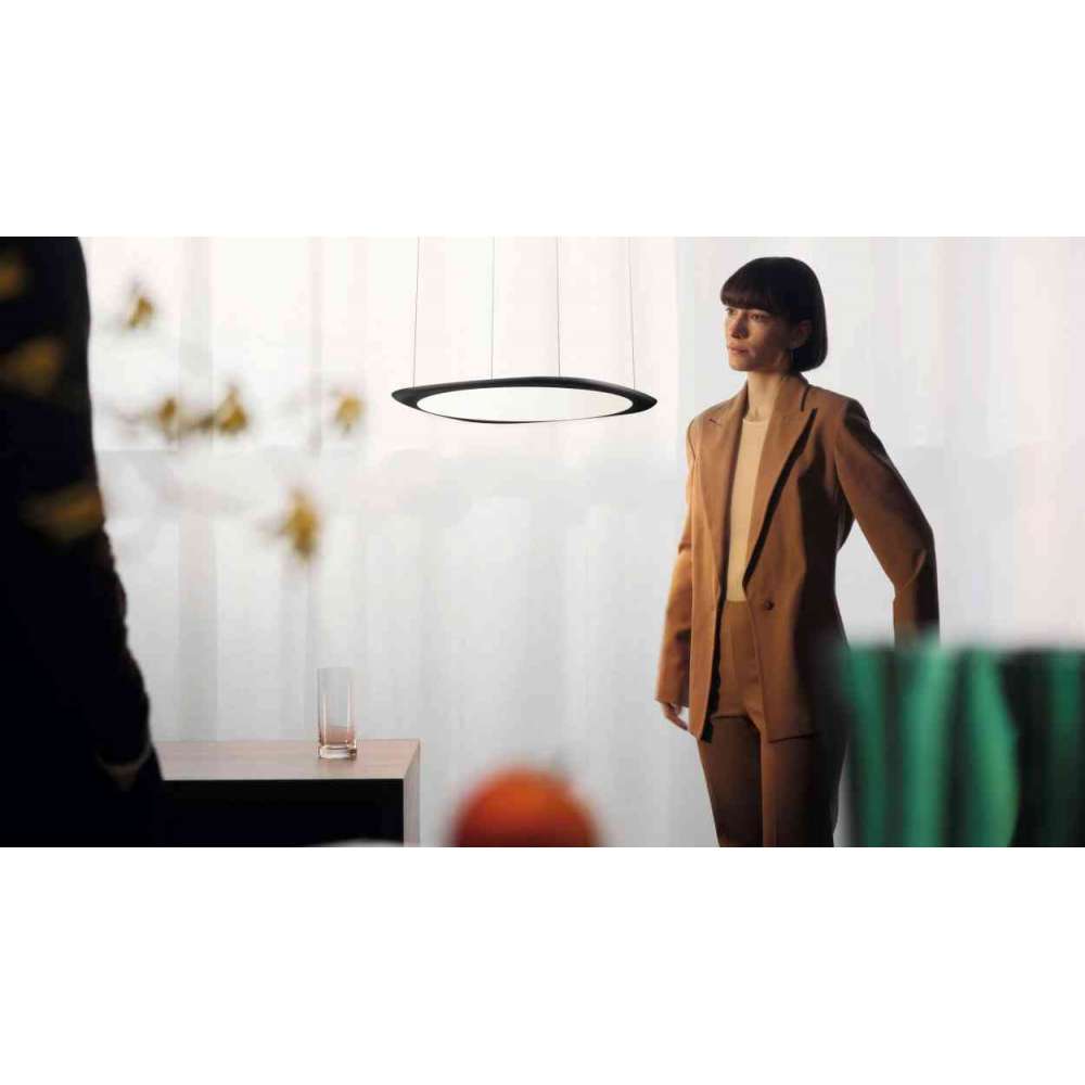 Majestic FLYING unosi się w kosmosie. Swobodnie opuszczana i podnoszona dzięki opatentowanemu systemowi regulacji wysokości, ta wszechstronna oprawa rzuca obfity strumień światła do sal konferencyjnych, stołów jadalnych lub oświetlenia architektonicznego.