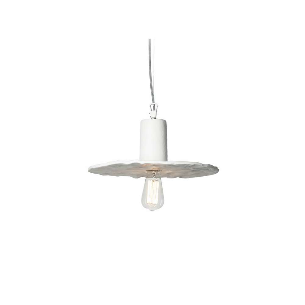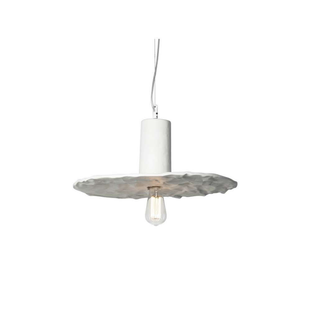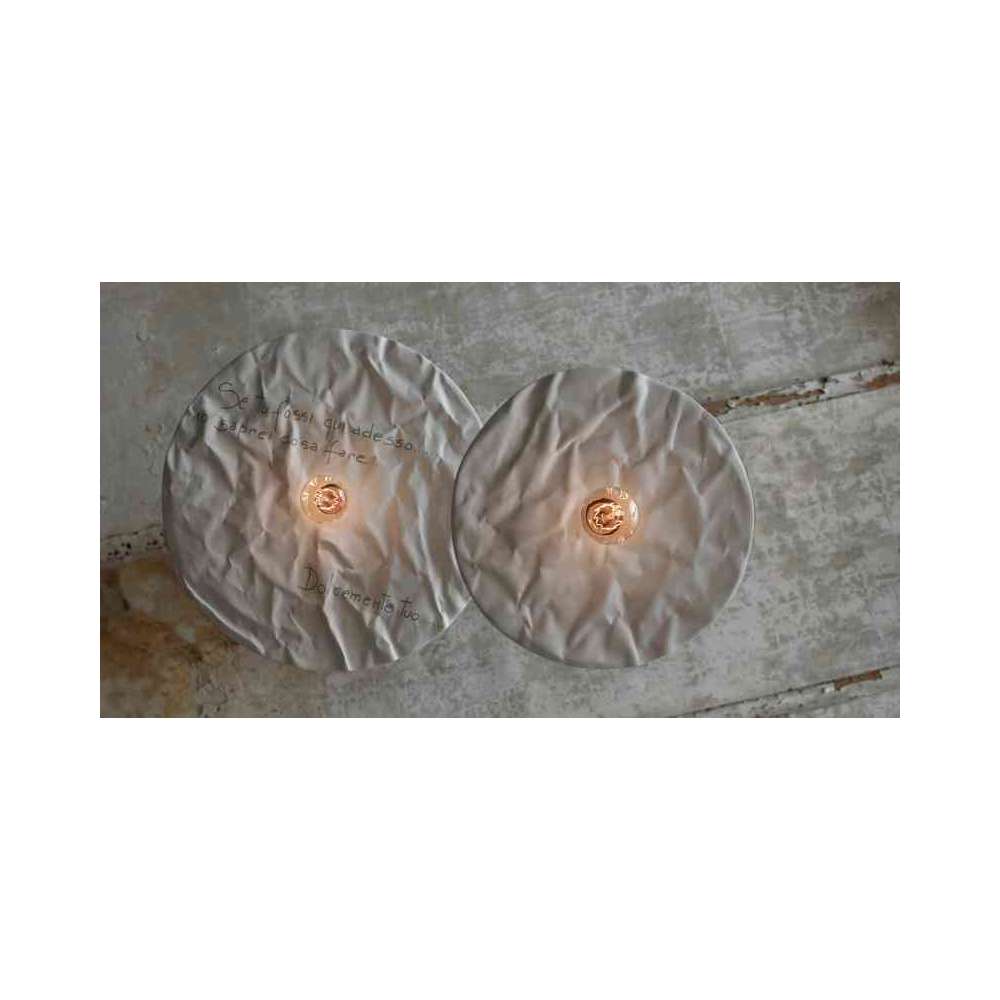 Biała lampa wisząca Scrivimi zachęca do pozostawienia wiadomości, na dole: efekt skurczonego papieru: szczególna cecha umożliwiona przez uniwersalny materiał, jakim jest ceramika, który może tworzyć nieoczekiwane (zmięte) kształty. maks. 1x70w E27 oszczędność energiiOdbiorca: :