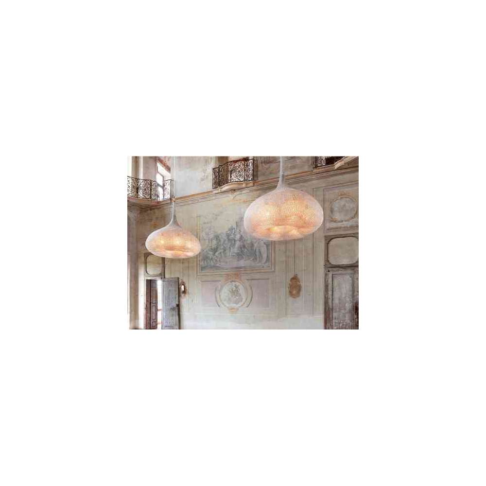 Swoją nazwę Luce zawdzięcza fascynującemu zjawisku zmysłowemu, niemal duchowemu, łączącemu człowieka z otoczeniem. Lampa ta powstaje poprzez tkanie gołymi rękami nici przewodzącej, przenosząc w ten sposób ideę bezpośrednio na formę w nierozerwalnej syntezie struktury i dekoracji. Linie cienia generowane przez światło Luce rozpraszają się na powierzchniach i przedmiotach, łącząc je ze sobą w taki sposób, że mogą swobodnie unosić się w oświetlonym otoczeniu w nowy sposób, zarówno sugestywne i ekscytujące. Części metalowe w kolorze miedzi lub błyszczącym czarnym chromie.Zapisz się do naszego newslettera i otrzymuj oferty specjalne i rabaty dla stałych i nowych klientów! Wystarczy, że podasz nam swój adres e-mail i nie przegapisz już żadnej oferty!
