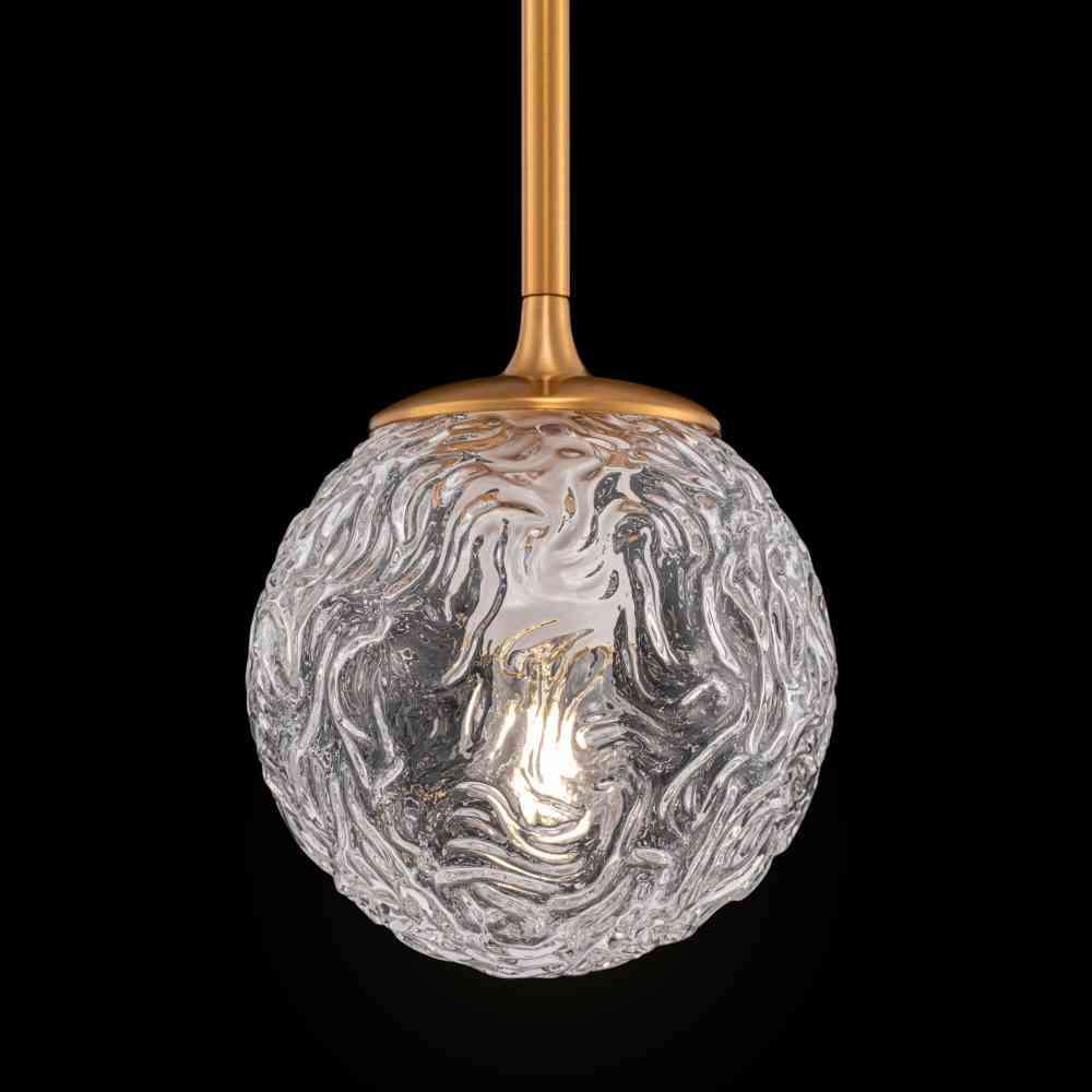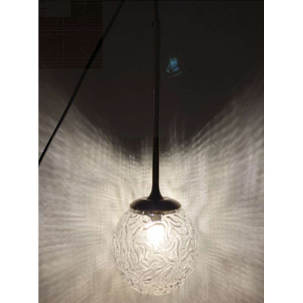 Klosze są wykonane z przezroczystego szkła z efektem mory. Okucia dostępne są w kolorach mosiądzu i chromu. Wysokość opraw zwieszanych można regulować długością kabla.