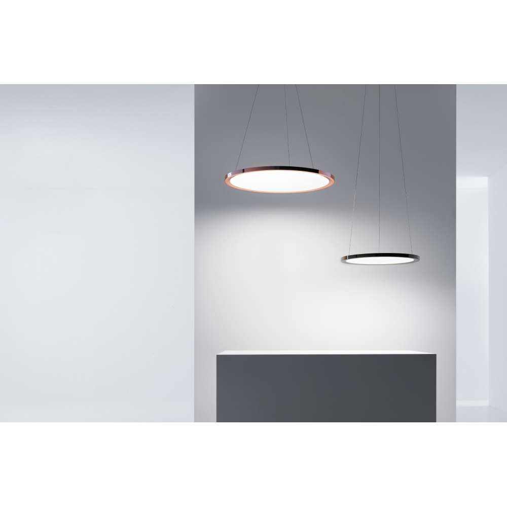 Hinomaru to lampa wisząca Led wykonana z metalu z galwanicznym wykończeniem w kolorze czarnym niklu i różowego złota. Dyfuzor z PMMA z czterowarstwową technologią Opti-3 HoneyComb: urządzenie do odzyskiwania przepływu, panel środkowy z PMMA z laserowym mikronacięciem, HoneyComb i panel z poliwęglanu z przezroczystym zamknięciem. Ściemniane źródło topLED. Rozeta sufitowa z malowanego na biało metalu. Kable nośne pełnią rolę przewodników. Źródło światła: 8614 - 8615 - topLED 30 W / 220-240 V / 3000 K / 4042 lm - CRI 90 - IP40 8618 - 8619 - topLED 42 W / 220-240 V / 3000 K / 5671 lm - CRI 90 - IP40 Cienka i błyszcząca metaliczna obwódka Hinomaru z różowego złota lub czarnego niklu mieści TopLED źródło światła. Oświetlenie jest przekazywane na duży centralny dysk dzięki technologii Opti-3™ HoneyComb, emitując miękkie i jednolite światło do otoczenia.Zapisz się do naszego newslettera i otrzymuj oferty specjalne i rabaty dla stałych i nowych klientów! Wystarczy, że podasz nam swój adres e-mail i nie przegapisz już żadnej oferty!