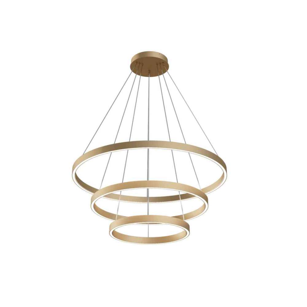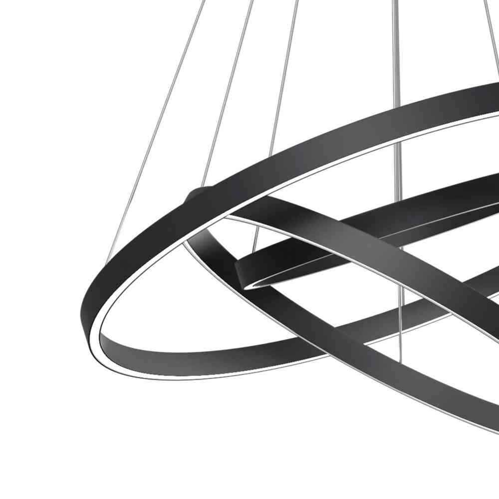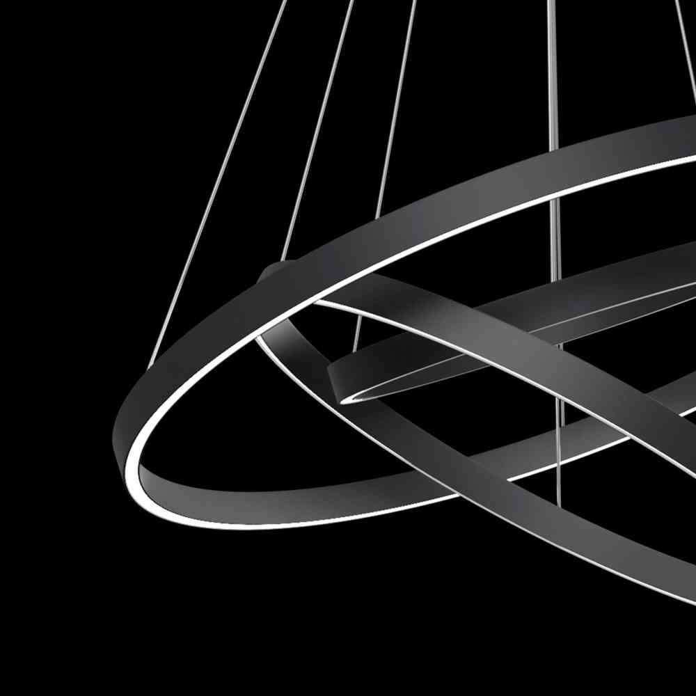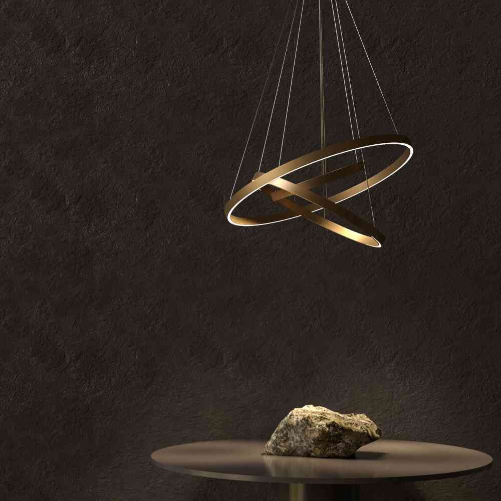 Lampa wisząca Obręcz . Model ma kształt metalowego pierścienia. Serię reprezentują oprawy o różnych rozmiarach w 3 kolorach: białym, czarnym i mosiężnym. Źródła światła LED.