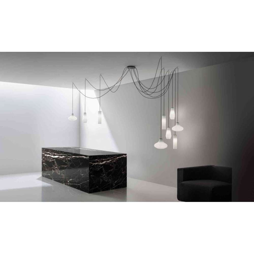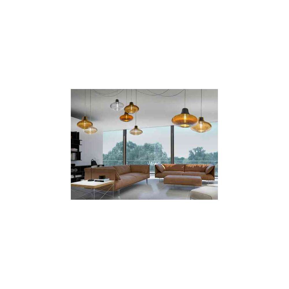 Rodzina zawieszanych lamp ze szkła dmuchanego. Niespodziewana gra światła i refleksów pochodzi z prążkowanego wykończenia w stylu retro. Dialog pomiędzy Olivią, Emmą i Clio jest pełen znaczeń w poszukiwaniu idealnej równowagi pomiędzy zestawieniami kolorystycznymi a pojedynczą lub wielokrotną instalacją. Dostępne są kolory kryształu, stali, bursztynu, brązu, tytoniu, zielonego i błyszczącego białego szkła, czarne lub matowe mosiężne wykończenia baldachimu i akcesoriów. W zestawie żarówka LED Filament.