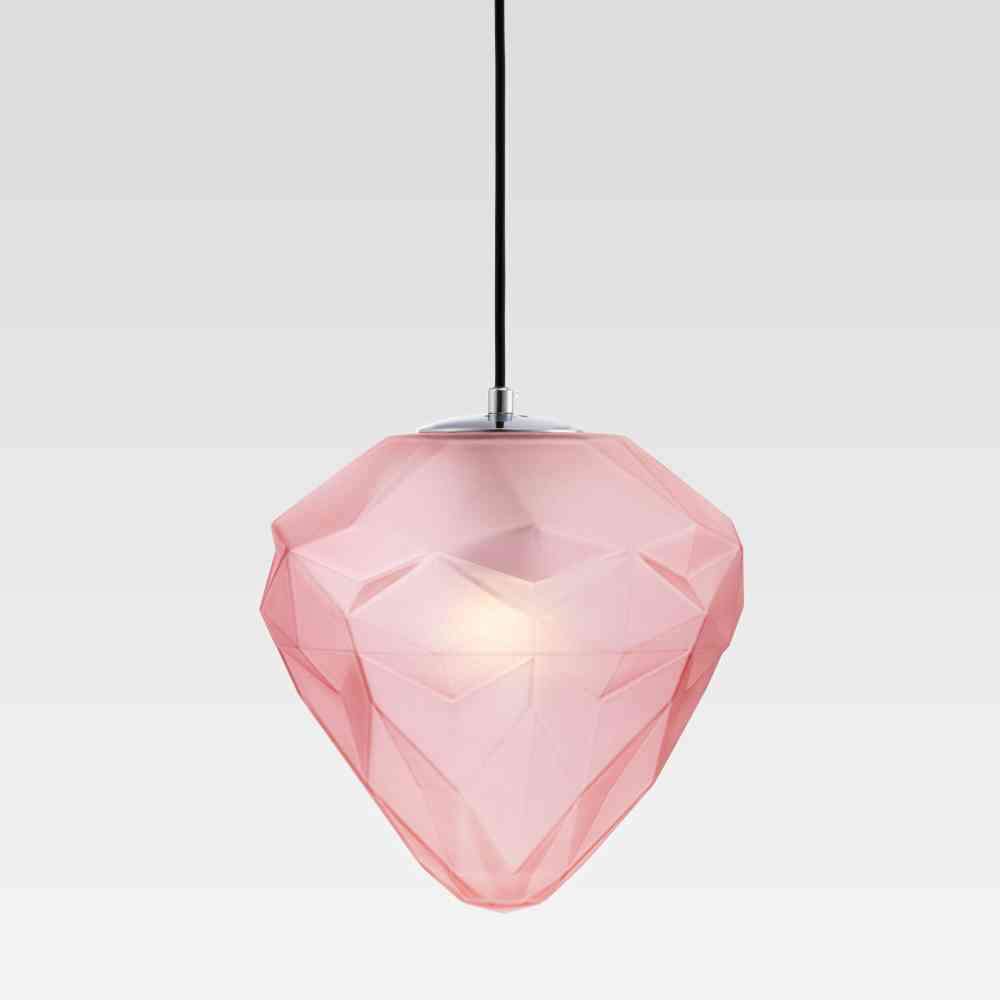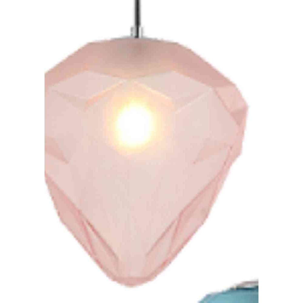 Lampa wisząca Globo. Abażury są wykonane ze szkła i są dostępne w kolorze niebieskim, różowym i szarym. Okucia metalowe. Wysokość opraw regulowana jest długością przewodu.