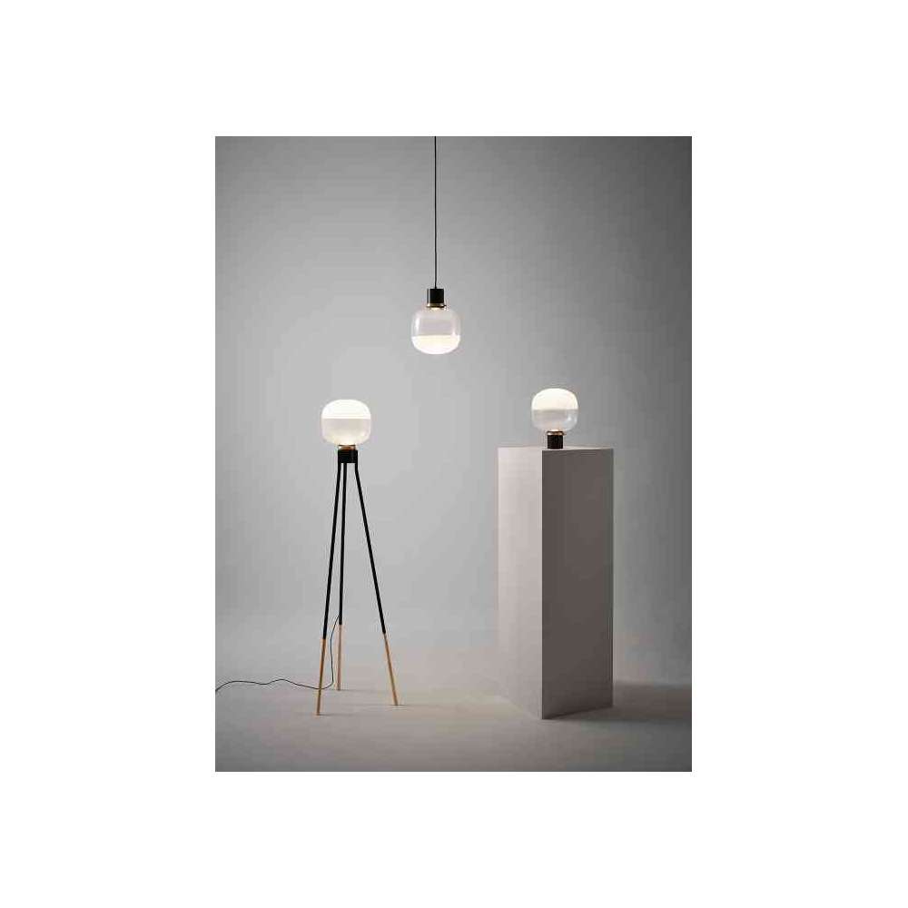 Ghost to lampa wisząca z rozproszonym światłem. Dyfuzor wykonany jest z dmuchanego szkła ze szczególnym połączeniem przezroczystego i satynowego wykończenia, co pozwala na lepsze rozproszenie światła. Metalowa podstawa dyfuzora dostępna w jednym wariancie w kolorze czarnym ze złotą wkładką.