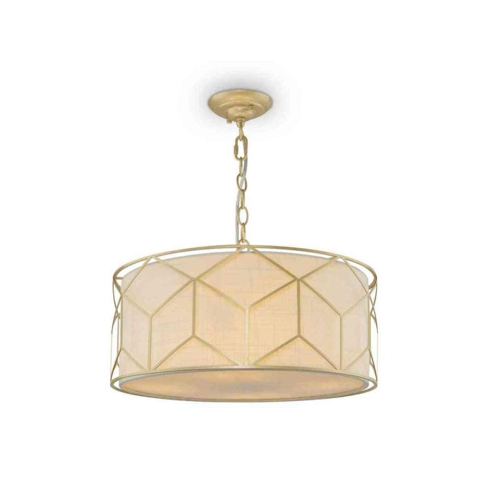 Lampa wisząca Messina. Metalowa rama z dekoracją szablonową. Klosz pokryty lnem.