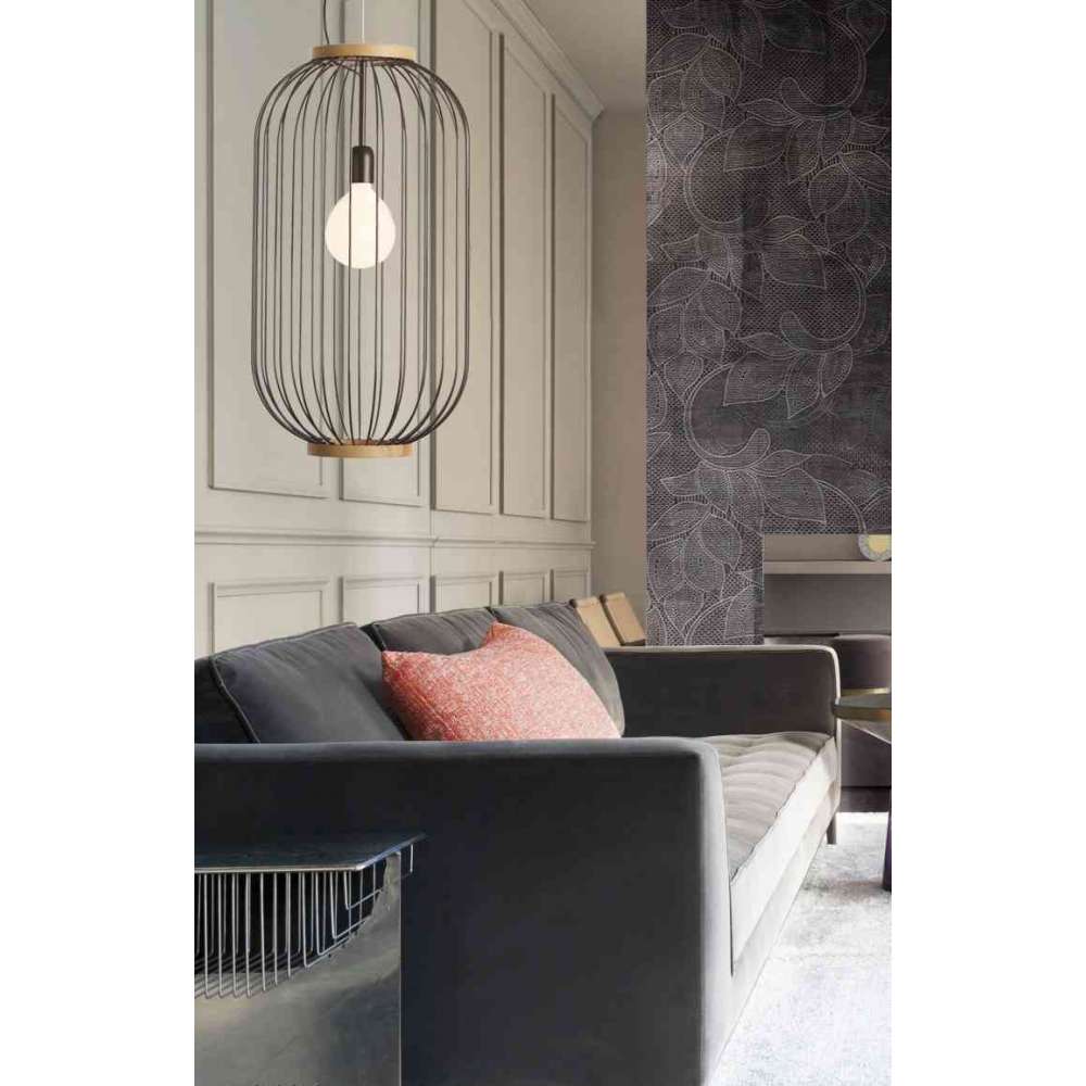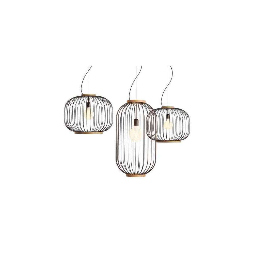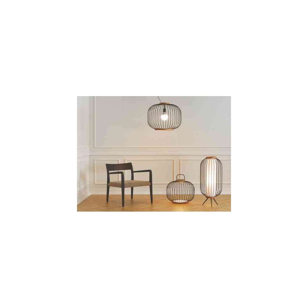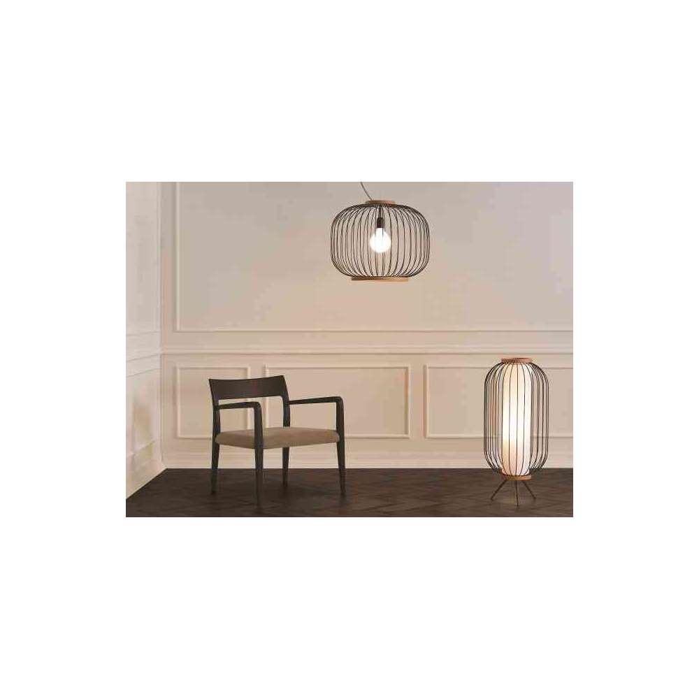 CHAPLIN | Kolekcja lamp podłogowych i wiszących wykonanych z kształtowanego i malowanego proszkowo stalowego pręta. Dwie opaski zamykające okrągły korpus wykonane są z naturalnego drewna. Wersje podłogowe mogą być również używane jako układarka w obu wersjach z kloszem lub bez. Źródło LED w wersji z uchwytem wyposażone jest w akumulator o żywotności około 6 godzin.Odbiorca: :
