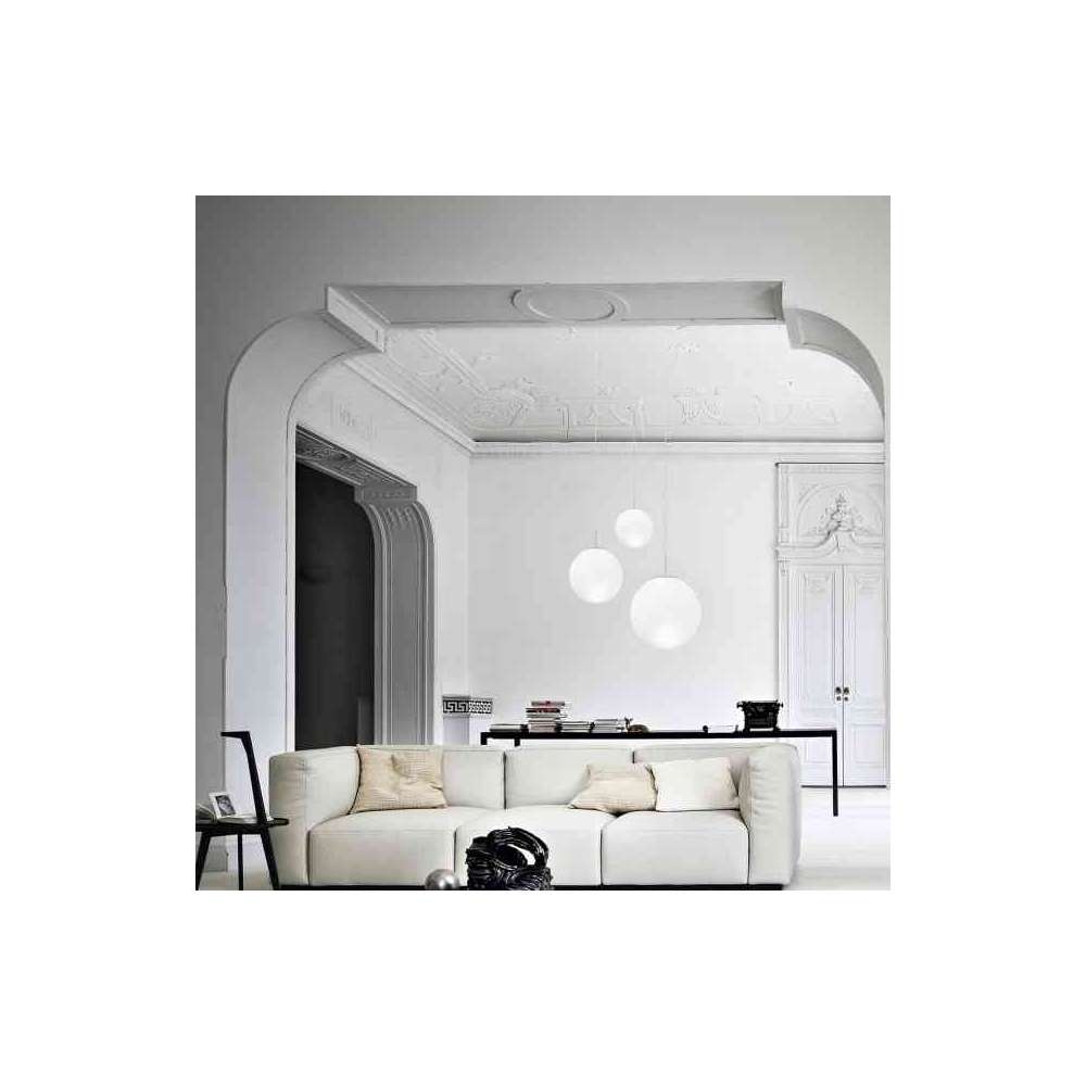 Lampa wisząca z potrójnego dmuchanego szkła, opalowy, matowy biały. Części metalowe chromowane lub malowane na kolor biały. Ø 30 LED/HALO/FLUO Źródło E27 A60 Moc całkowita 100W Emisja rozproszona Przełączalne ściemnianie, zgodnie z żarówką Napięcie230V Ø 40 LED/HALO/FLUO Źródło E27 A60 Całkowita moc 150W Emisja rozproszona Przełączalne ściemnianie, zgodnie z żarówką Napięcie 230V Ø 50 LED/HALO/FLUO Źródło E27 A60 Całkowita moc 150W Emisja rozproszona Przełączalne ściemnianie, zgodnie z żarówką Napięcie 230VOdbiorca: :