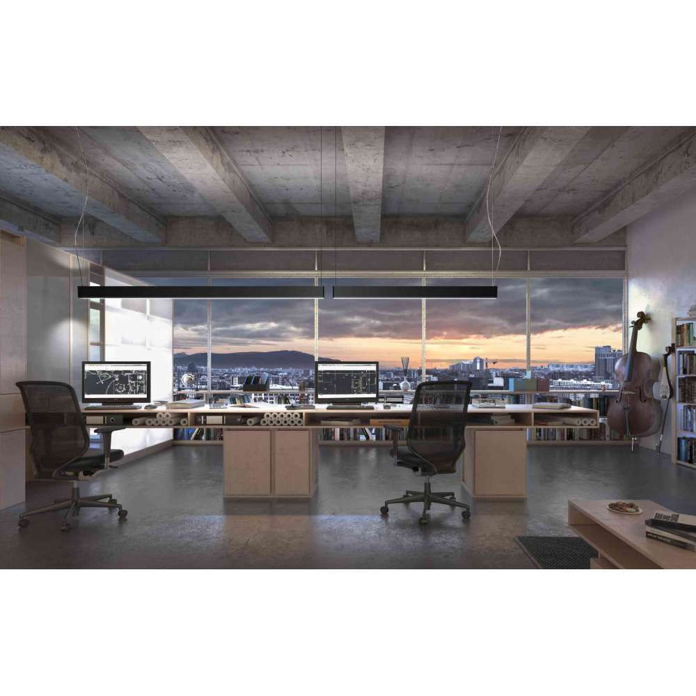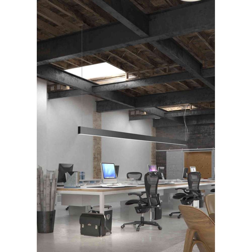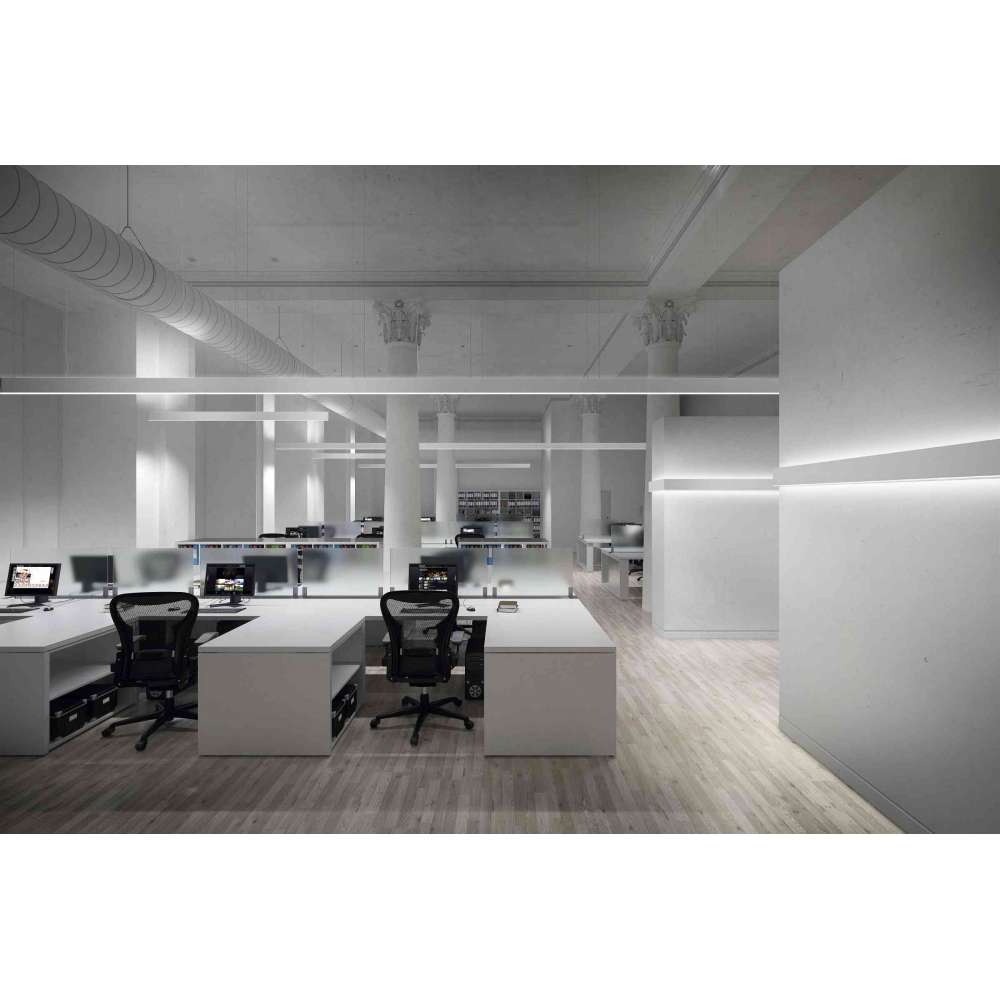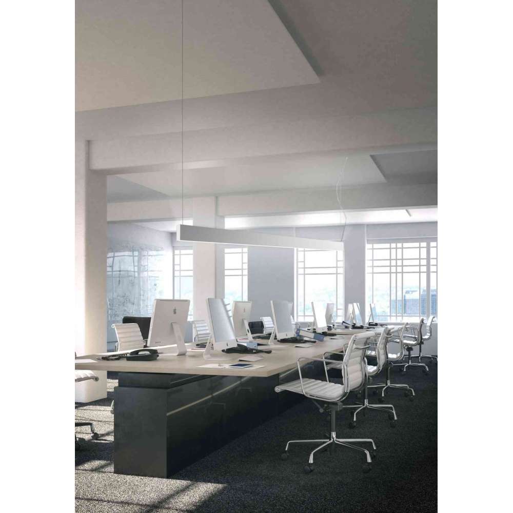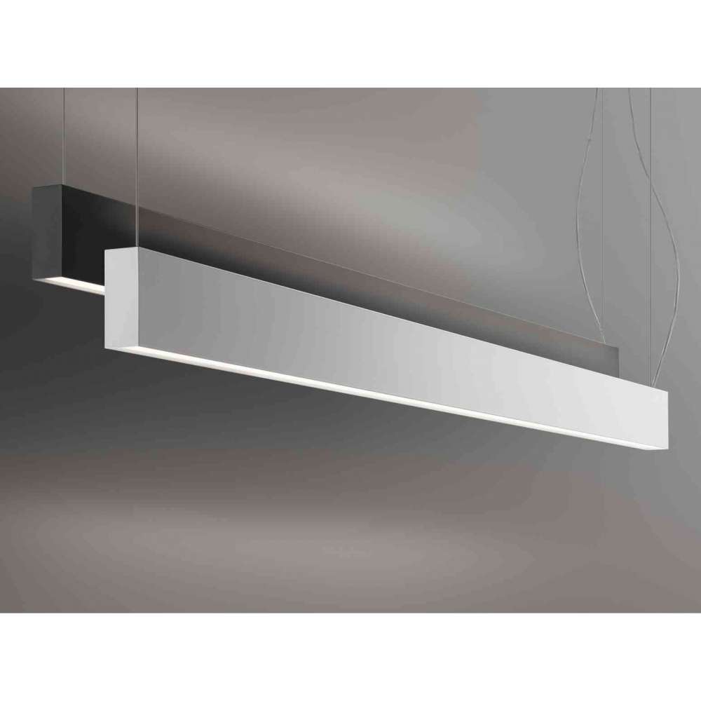 Modułowa ściana z ekstrudowanego aluminium i system zawieszenia. Źródło światła wykonane z modułu LED ze światłem bezpośrednim i pośrednim oraz osobnymi zintegrowanymi sterownikami ON/OFF lub DALI/PUSH DIM. Wykończenie w farbie poliakrylowej w kolorze białym lub czarnym oraz gładkie wykończenie frontu profilu. Klosz z opalizującego lub mikropryzmatycznego poliwęglanu. Idealny do biur, korytarzy, klatek schodowych.