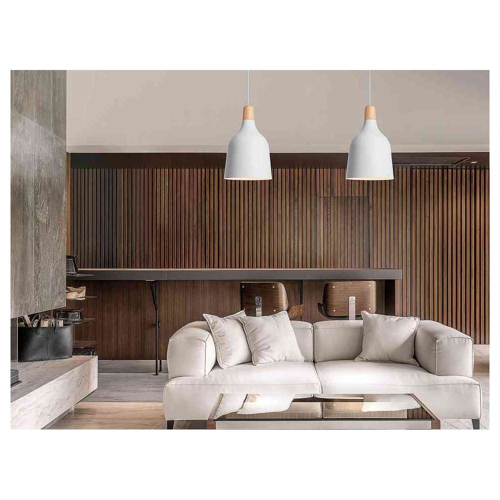 ODENSE to lampa wisząca z metalowym kloszem z drewnianym blatem i dostępna w dwóch kolorach, czarnym i białym. Jego prosta forma sprawia, że ogląda się go ponadczasowo i bez problemu wpasuje się w różnego rodzaju wnętrza. ODENSE ma trzymetrowy przewód, mocowanie na hak i używa standardowych żarówek E27 (które nie są dołączone).