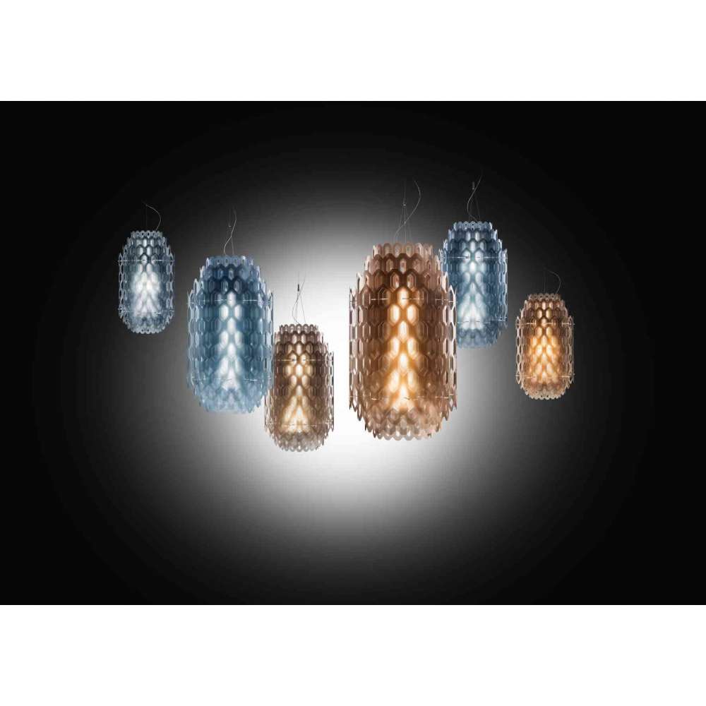 Rzeźbiarski kształt Chantal wydaje się być uformowany z pojedynczej, pracowitej ramy, podobnie jak plaster miodu z niewyczuwalnymi elementami. Jego koncentryczne, sześciokątne kształty pozwalają na niekończące się widoki. Źródło LED Chatal przypomina fale odrywające się od brzegu, pozostawiając za sobą małe podświetlone krople. KOLORY: Pomarańczowy, Niebieski, Biały MATERIAŁY: Cristalflex® / Lentiflex® Z: MagneticSystem® MAŁY: LED : 35W - 220V - 4.000 Lumen - 2700 K (ciepła biel) - CRI90 Triak ściemnialny (krawędź spływowa min. 20W) ŚREDNI: LED: 70W - 220V - 8.000 Lumen - 2700 K (ciepła biel) - CRI90 Triak ściemnialny ( Krawędź spływu min. 20 W)Odbiorca: :