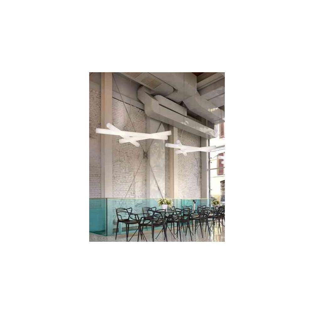 Mesh to lampa wisząca zaprojektowana przez włoskie studio BBMDS. Jego proces generacyjny zaczyna się od pojedynczej jednostki, unikalnej i wykonanej z polietylenu: można ją powielić, aby rozgałęzić przestrzeń. Każda pojedyncza jednostka składa się z trzech skrzyżowanych elementów, co pozwala na modułowość, tworząc różne schematy dla każdego rodzaju przestrzeni wewnętrznej. W zestawie zestaw LED 60W, max 4575 lumenów Warianty LED - światło zimne 4000K -ciepłe światło 3000 KOdbiorca: :