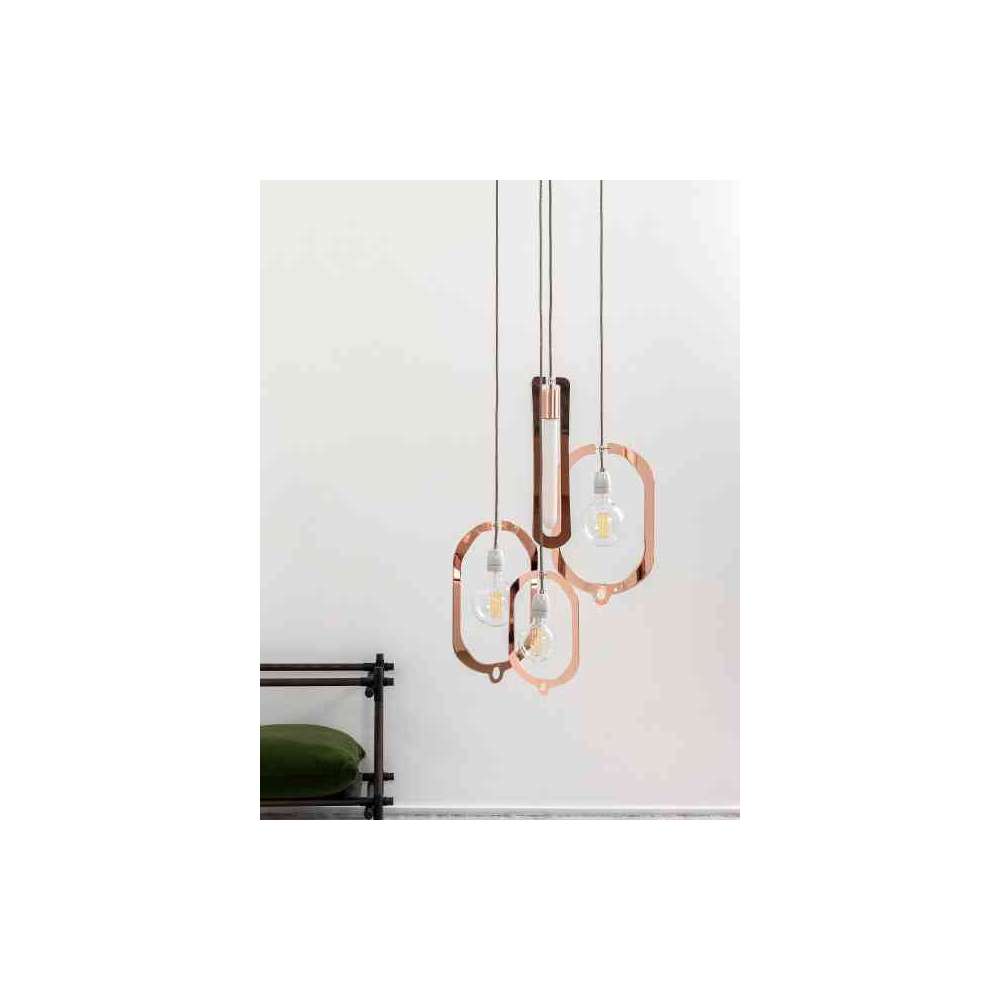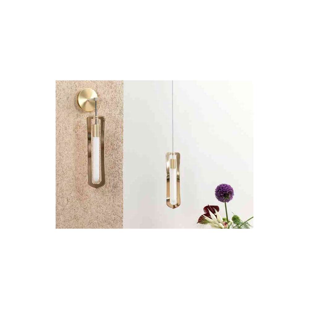 Lampa wisząca lub ścienna, której sylwetka przypomina lancę, wykonana z ukształtowanego metalu i dostępna w wykończeniu miedzianym, złotym i czarnym; będąc kompaktowym i minimalnym, spełnia swoją rolę, utrzymując pomocną i dyskretną obecność.