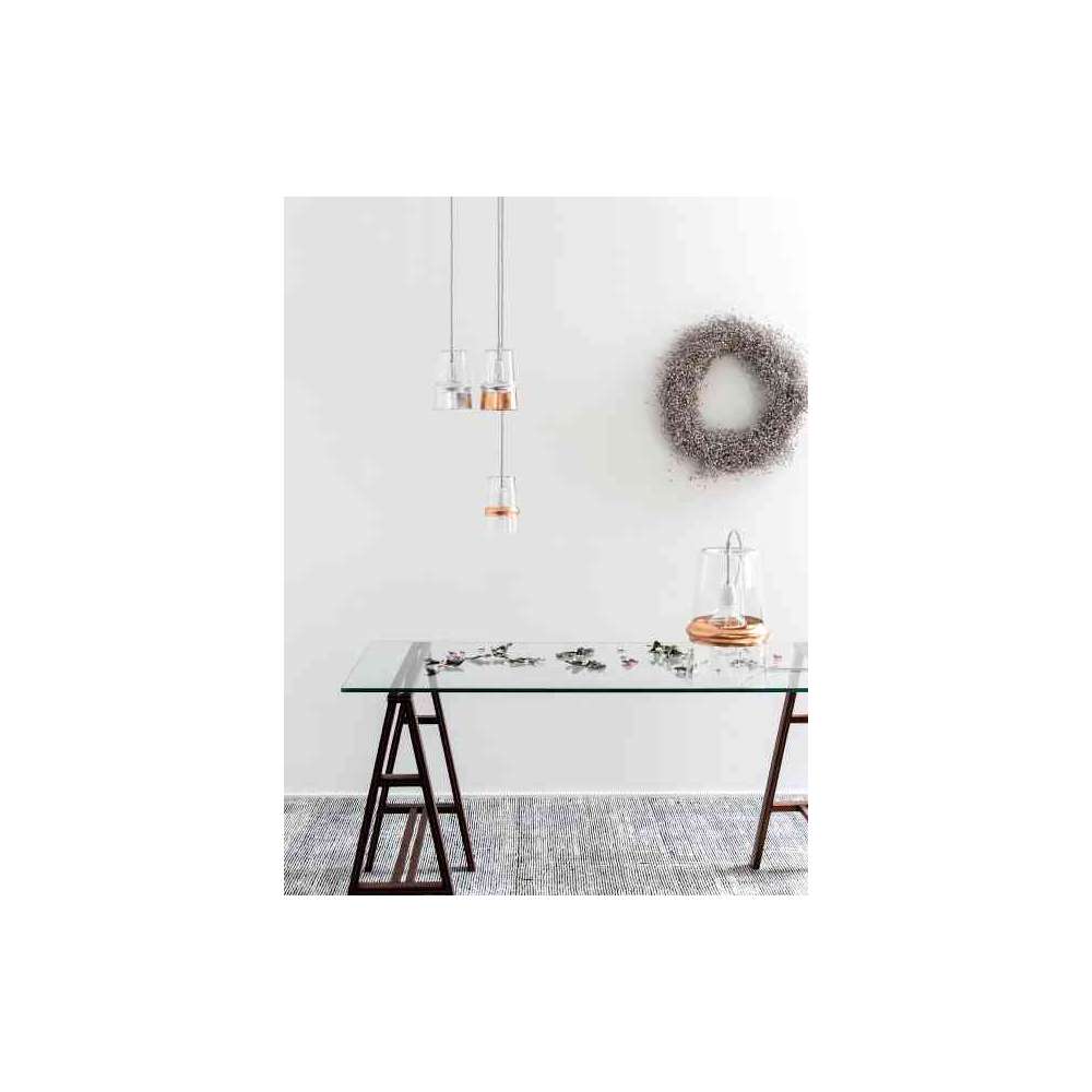 HIND RABII zainspirowała się charakterystycznym kształtem tradycyjnego marokańskiego szkła Beldi do herbaty. Proste, czyste linie wisiorka skontrastowane są z jakością materiału, z którego wykonane jest szkło, uzyskane za pomocą technik dmuchanego powietrza made in Italy. Ponadczasowa lampa: stylowa i oryginalna. Belle d'I Chic, mieszanka kolorów i bardzo wyrafinowanych wykończeń, nadaje tej wersji elegancji i wyrafinowania: centralny pasek ozdobny jest wykonany ze złota, srebra lub miedzi.