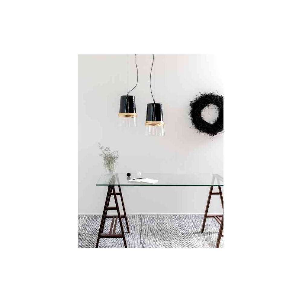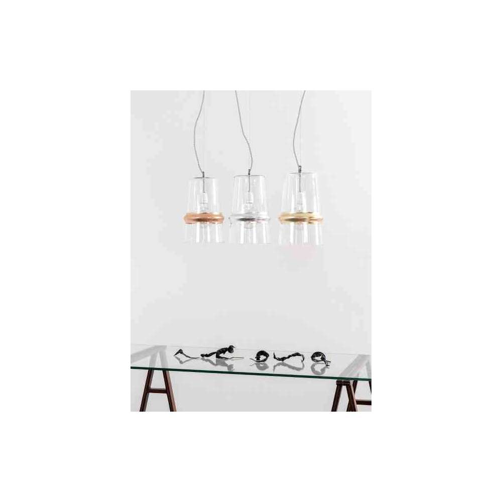 HIND RABII zainspirowała się charakterystycznym kształtem tradycyjnego marokańskiego szkła Beldi do herbaty. Proste, czyste linie wisiorka skontrastowane są z jakością materiału, z którego wykonane jest szkło, uzyskane za pomocą technik dmuchanego powietrza made in Italy. Ponadczasowa lampa: stylowa i oryginalna. Belle d'I Chic, mieszanka kolorów i wysoce wyrafinowanych wykończeń nadaje tej wersji elegancji i wyrafinowania: centralny pasek dekoracyjny wykonany jest z płatków złota , srebra lub miedzi.