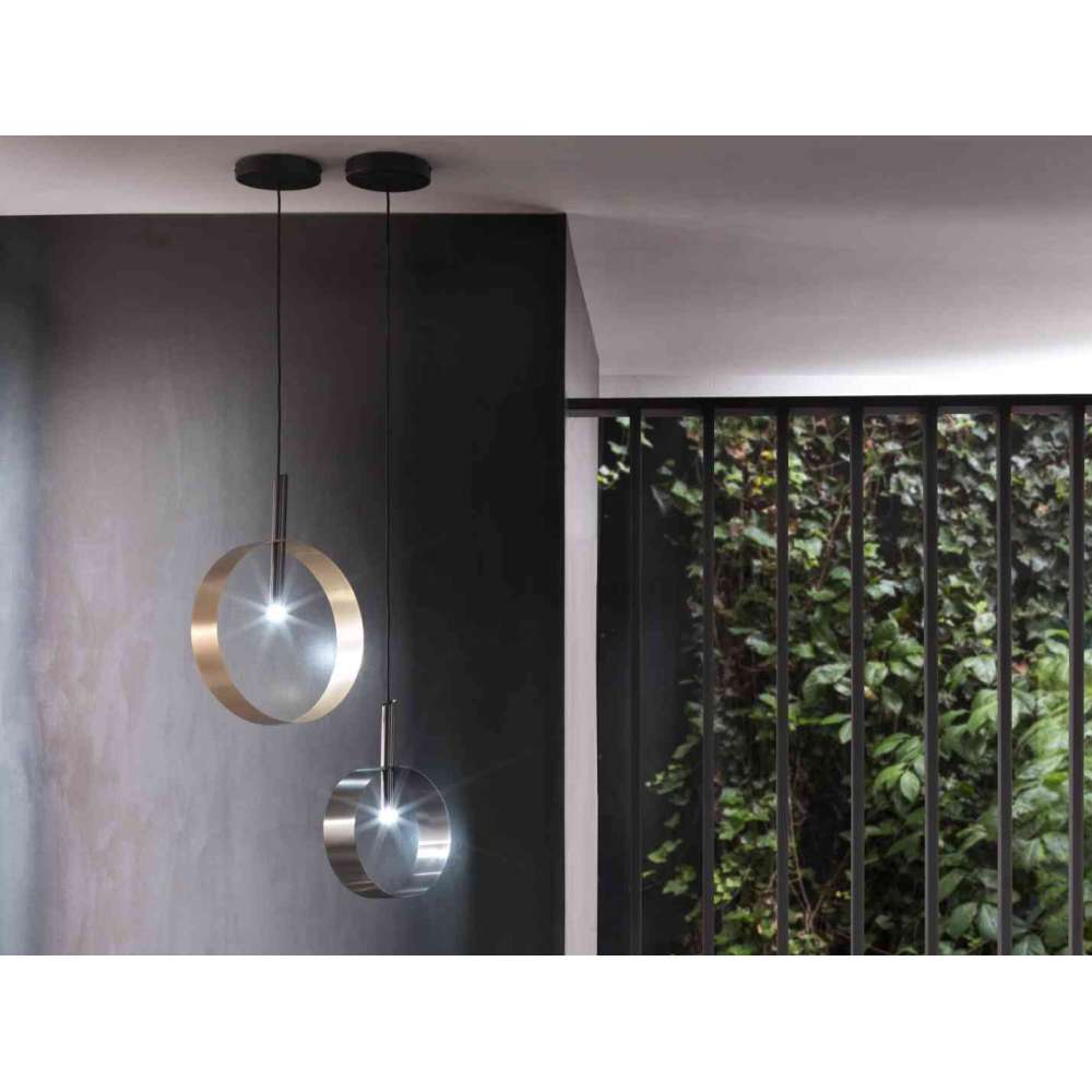 LED LOOP SS - Lampa wisząca o konstrukcji metalowej malowanej na kolor grafitowy i pierścieniach dostępna w kolorze: metal malowany galwanicznie w kolorach: satynowa miedź, satynowy złoty lub satynowy czarny chrom, lub metal malowany galwanicznie w kolorach: satynowa miedź na średni i duży pierścionek, satynowe złoto na mały i duży pierścionek, satynowy czarny chrom na mały i średni pierścionek lub metal malowany ogniowo w kolorach: grafit, różowe złoto, biały lub złoty. Pierścionek może mieć Ø30 cm , Ø40 cm, Ø 50 cm o grubości 10 cm. Zintegrowane oświetlenie LED.Odbiorca: :