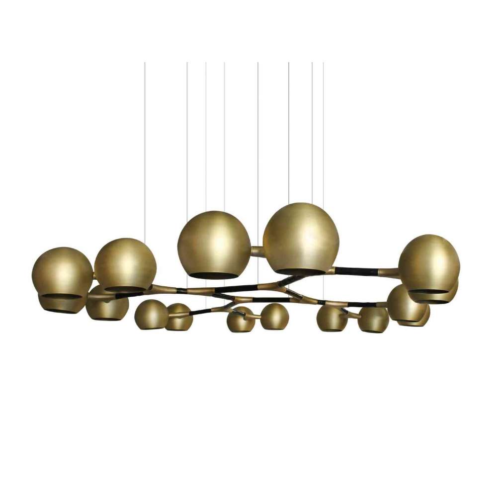 Podobnie jak bóg nieba i wschodzącego słońca, lampa wisząca HORUS obiecuje być punktem odniesienia w nowoczesnym wystroju wnętrz. Dzięki strukturze z matowego czarnego lakierowanego mosiądzu i kloszom z matowego mosiądzu, ten żyrandol jest idealny do stworzenia wspaniałego odkrycia nad zaciekłą sofą w salonie.Odbiorca: :
