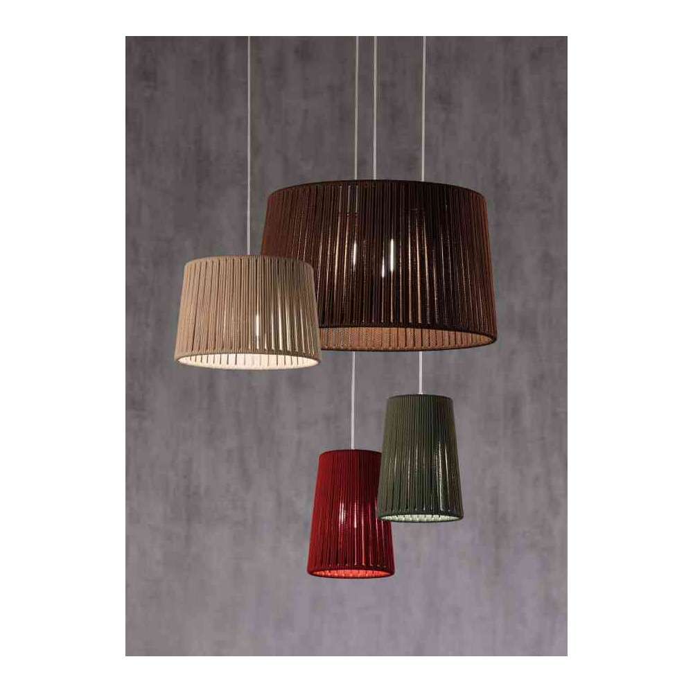 Inspiracja instrumentami etnicznymi i materiałami tekstylnymi. Metalowa rama i ręcznie robiony klosz z plecionego sznurka, który pozwala na zabawę kolorów i rozmiarów dla twoich projektów. Niektóre modele wyposażone są w matowy dyfuzor z PMMA.