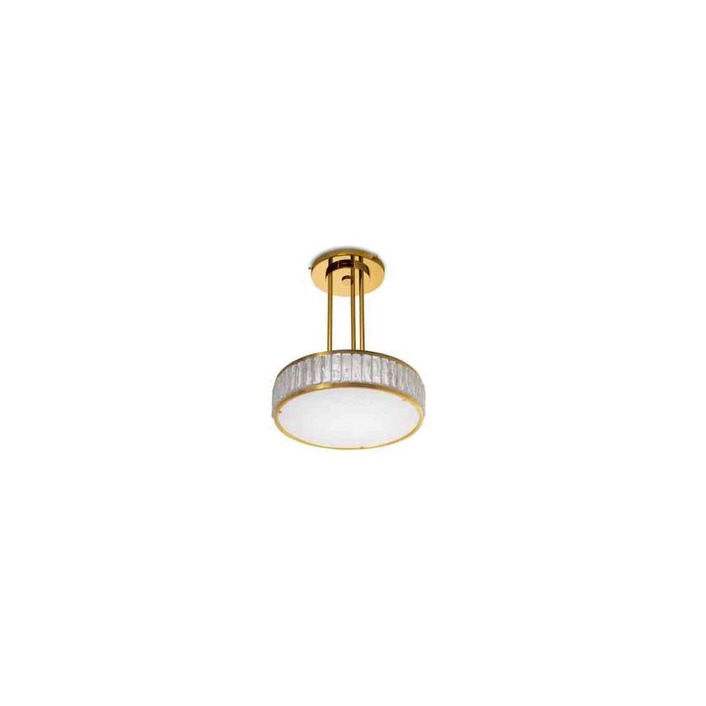 2058 A S - Szklana lampa wisząca ze światłem bezpośrednim. Delikatność surowych, ułożonych szklanych płyt osadzonych między dwoma brązowymi mocowaniami sprawiła, że nazwano ją „naszyjnikiem królowej”. Te okrągłe lub kwadratowe lampy sufitowe nadają się zarówno do wnętrz klasycznych, jak i nowoczesnych. Dostępne są różne wykończenia i średnice. Działa z każdym typem żarówki.Odbiorca: :