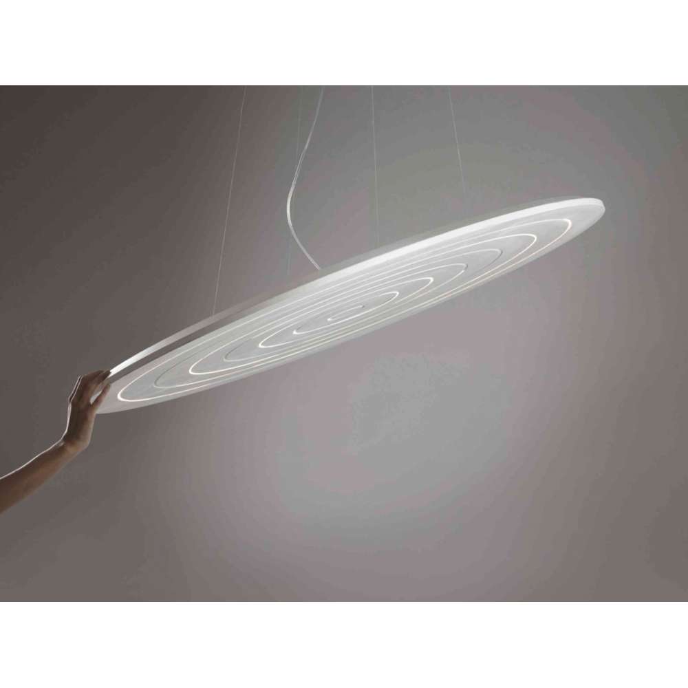 Lekki i kompaktowy dysk poprzecinany wewnątrz systemem koncentrycznych linii, które oprócz przenoszenia światła, definiują wizualny efekt wiecznego ruchu. Dinamica to kolekcja okrągłych lamp zaproponowanych w trzech wymiarach, charakteryzujących się całkowitym brakiem narożników i łamanych linii. Te podstawowe cechy, pozwalające na zawsze płynną percepcję w przestrzeni, definiują ponadczasowy design, doskonale dostosowujący się do kontekstów domowych i idealny do konfiguracji kontraktowych.
