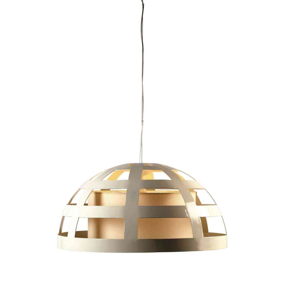 Cage I to lampa wisząca z lakierowanego żelaza, dostępna w różnych wykończeniach.