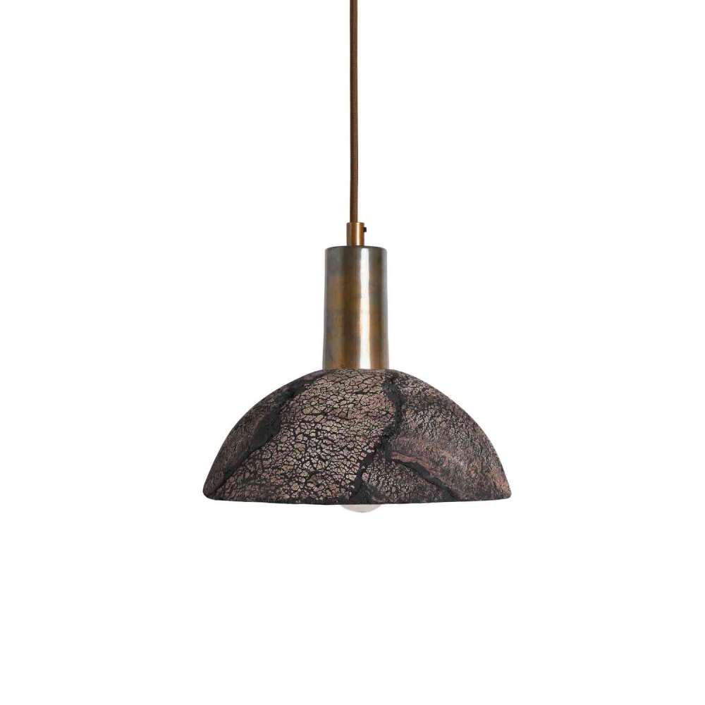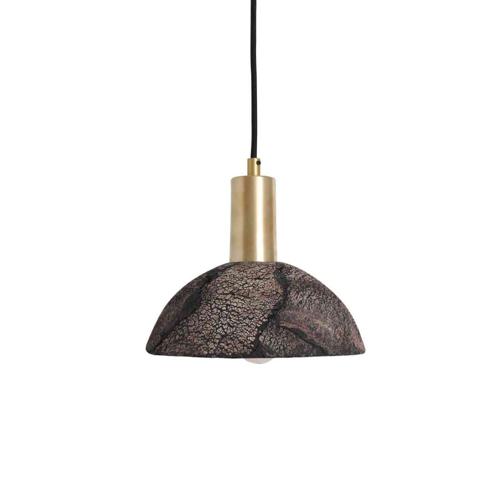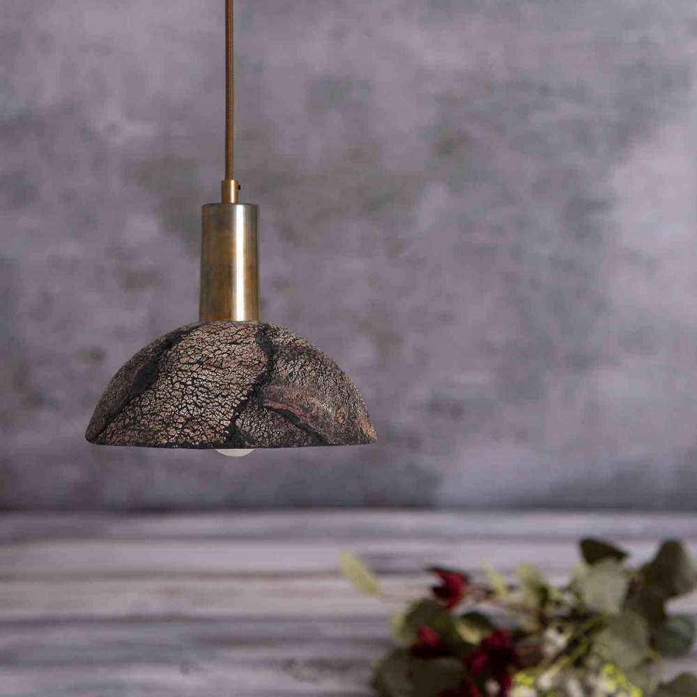 Pęknięte ryciny odzwierciedlają przedłużenie wzrostu korzeni drzewa, wiążąc naturalna esencja materiałów glinianych użytych do wykonania tego niezrównanego wisiorka. Wykończony w kolorze Black Clay, ten szczególny pigment jest delikatną mieszanką ciepłych brązów, szarości i ciemnych węgli. Dzięki zachęcającej cerze ten wielokolorowy wisiorek z pewnością wprowadzi zrelaksowaną atmosferę do wnętrza.