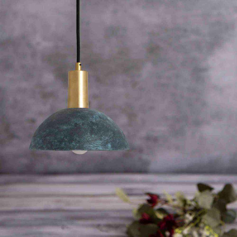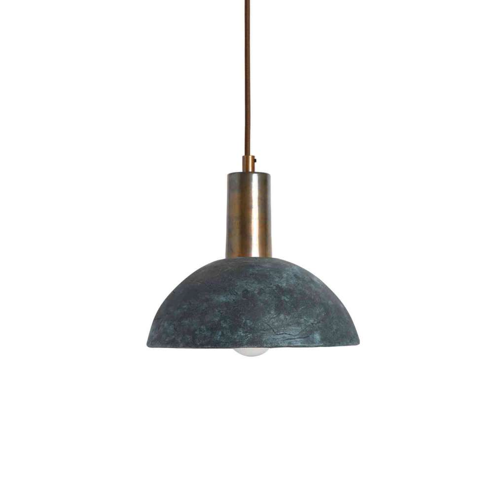 Wsparta na wysokim mosiężnym oprawce, ceramiczna lampa wisząca Kauri łączy się z innymi elementami wyposażenia wnętrz, oferując możliwość wyboru spośród czterech różnych kolory wykończenia: mosiądz antyczny, srebro antyczne, mosiądz polerowany i mosiądz satynowy.