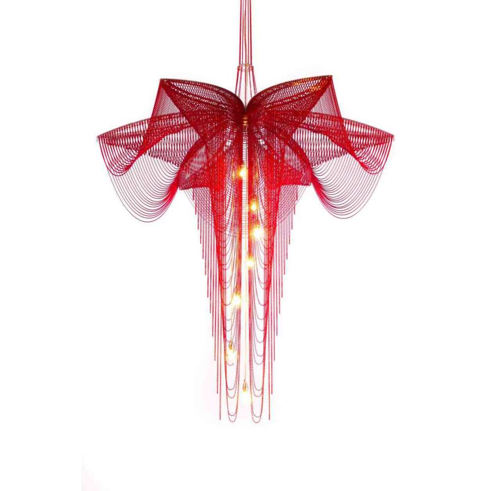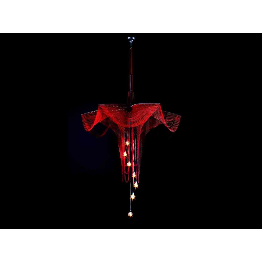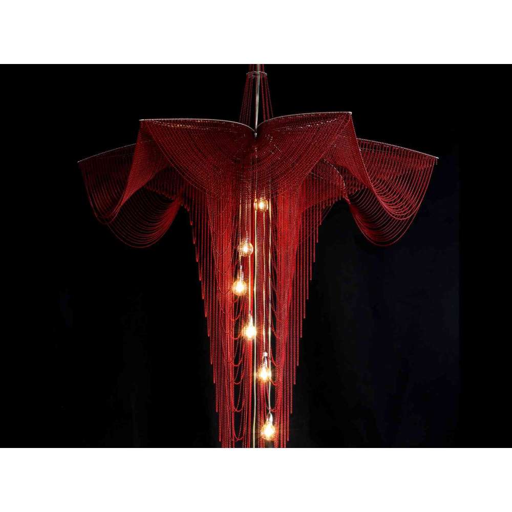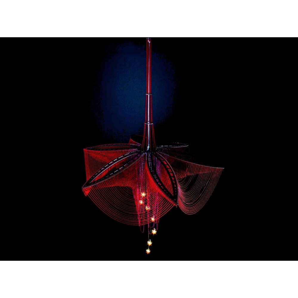 Projekt żyrandola oparty na formie zwisających kwiatów Fuschia z metalowymi "płatkami" uginającymi się pod ciężarem łańcuszka. Oświetlony spiralnym, zawieszonym układem kul ze szkła pyrex, zawierającymi lampy G4-Halogen 20 Watt 12V. Ten projekt ma ocenę ETL dla USA i Kanady. Dostępny w dwóch rozmiarach.