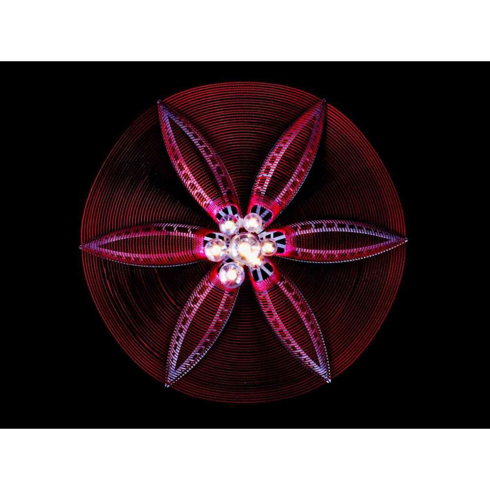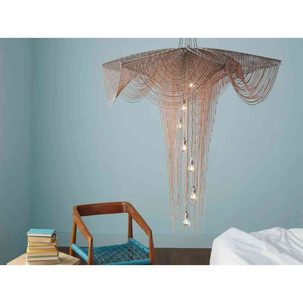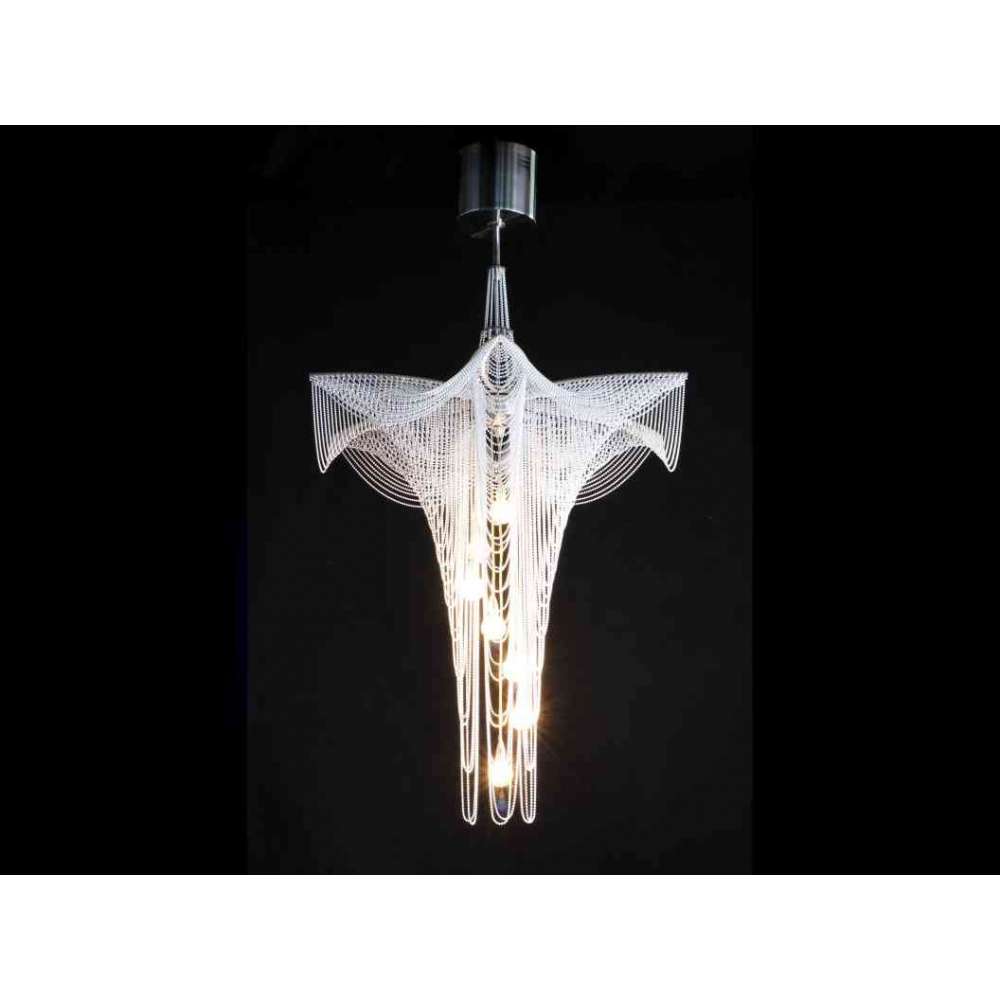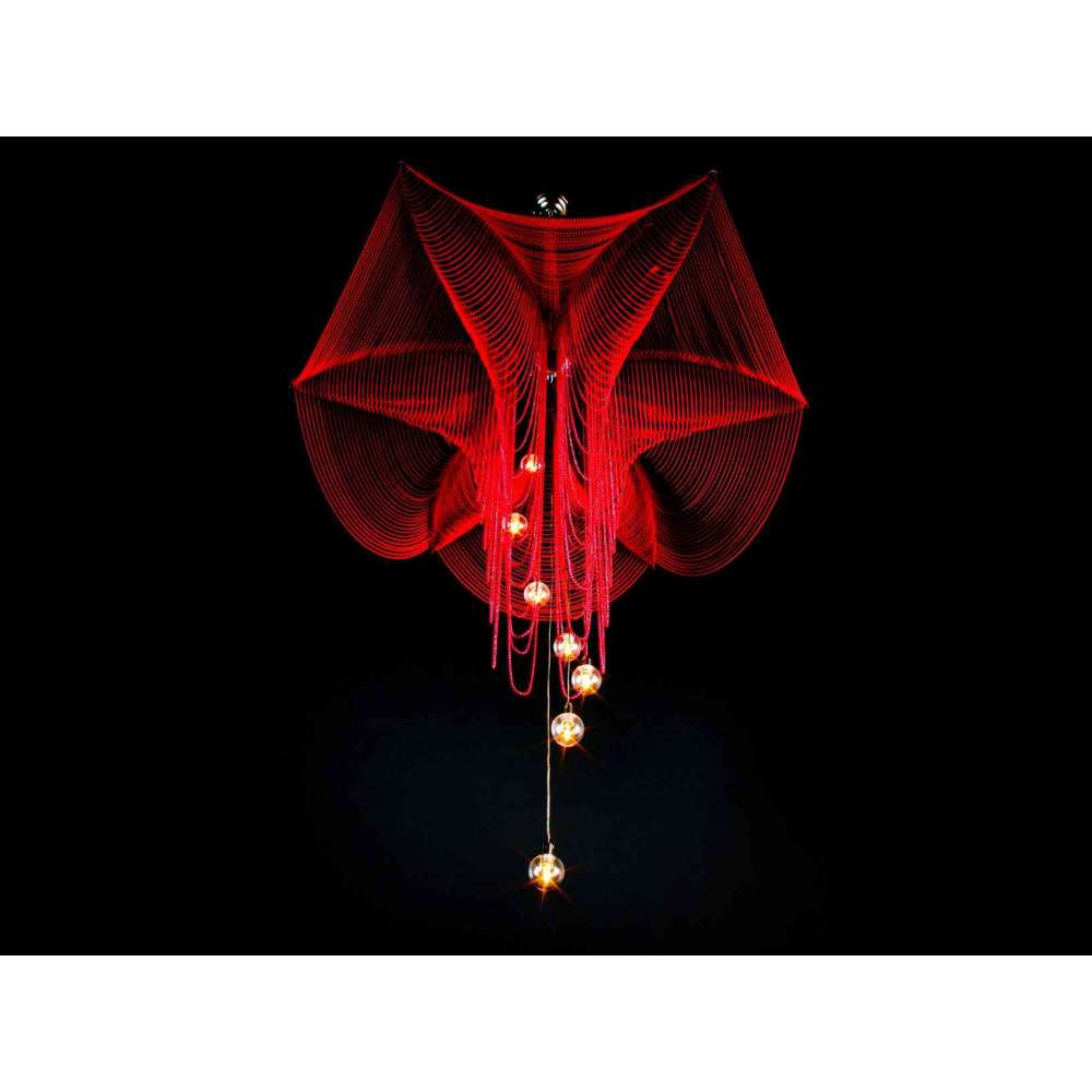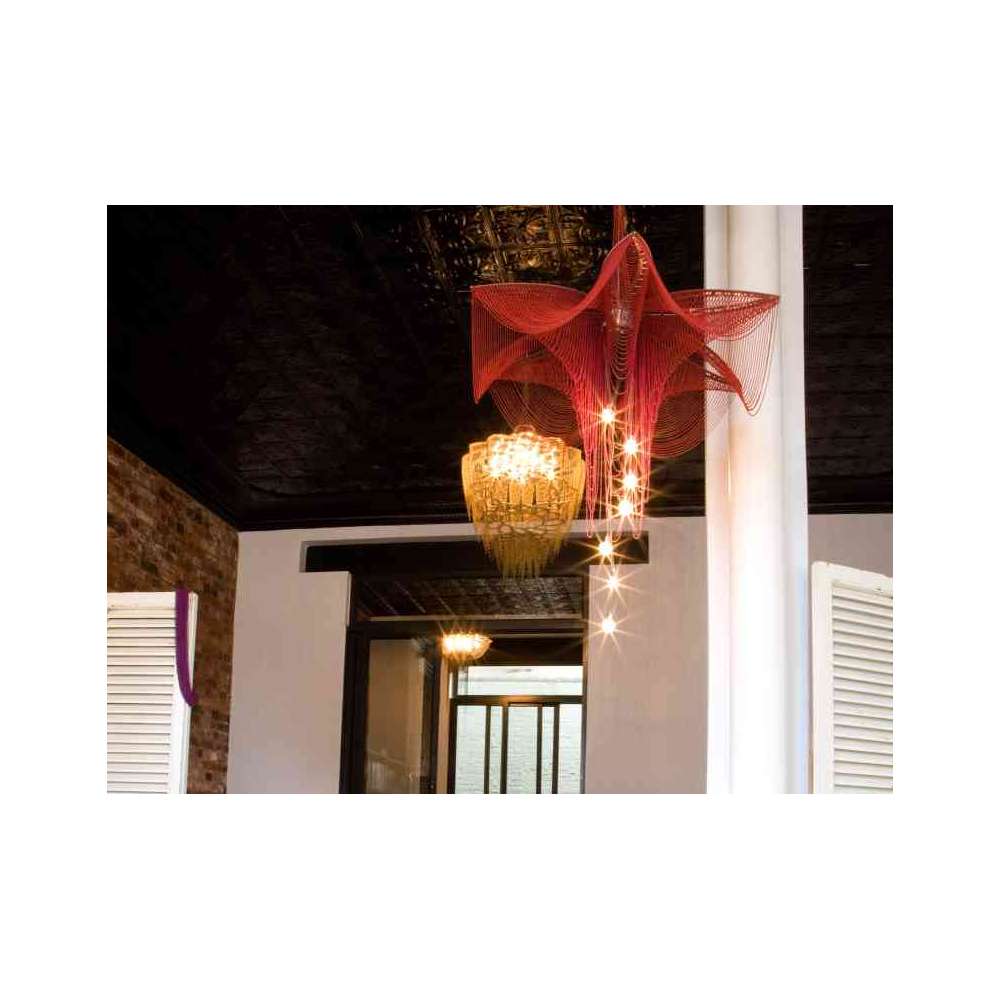 Projekt żyrandola oparty na formie zwisających kwiatów Fuschia z metalowymi "płatkami" uginającymi się pod ciężarem łańcuszka. Oświetlony spiralnym, zawieszonym układem kul ze szkła pyrex, zawierającymi lampy G4-Halogen 20 Watt 12V. Ten projekt ma ocenę ETL dla USA i Kanady. Dostępny w dwóch rozmiarach.