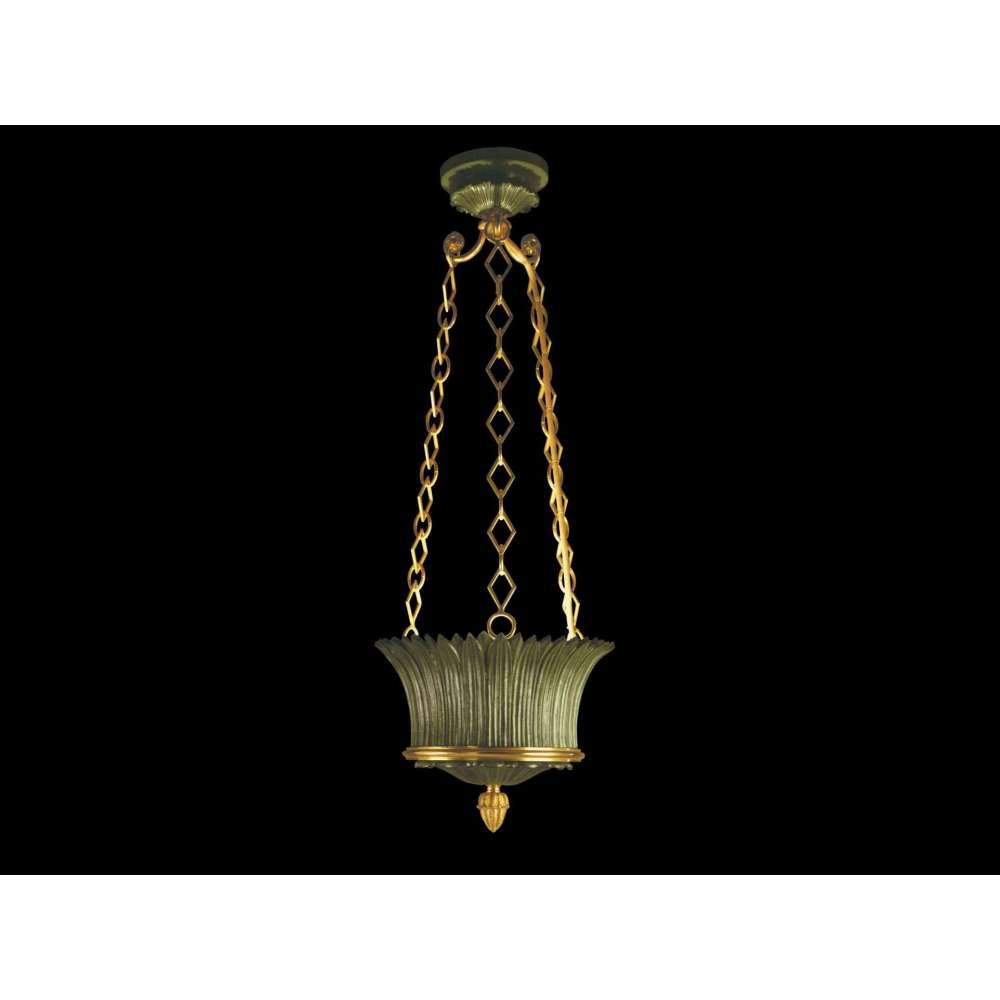 Directoire Pendant duży model z pozłacanym brązem 24K i antycznym zielonym wykończeniem.