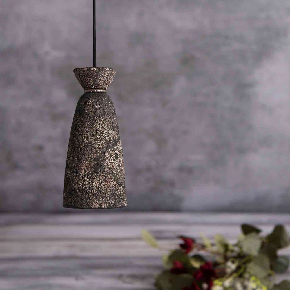 Wykończenie w kolorze Black Clay Pando pięknie odwzorowuje szczegóły szorstkiej, teksturowanej powierzchni. Podkreślając rustykalne oznaczenia na ceramicznym kloszu, to ciemniejsze wykończenie kolorystyczne jest odpowiednim wyborem do minimalistycznych i industrialnych wnętrz.