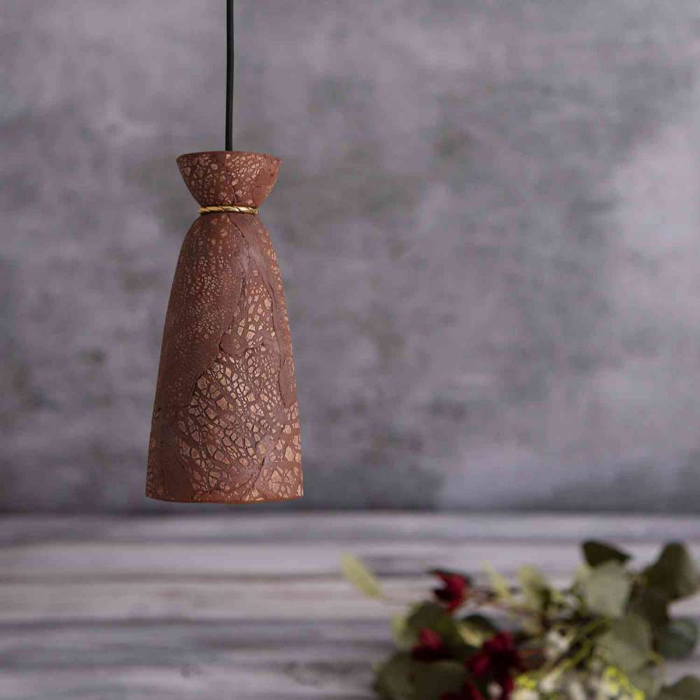 Minimalistyczna, ale urzekająca lampa wisząca, Pando jest dostępna w trzech pięknych odcieniach: Black Clay, Blue Earth i Czerwone żelazko.