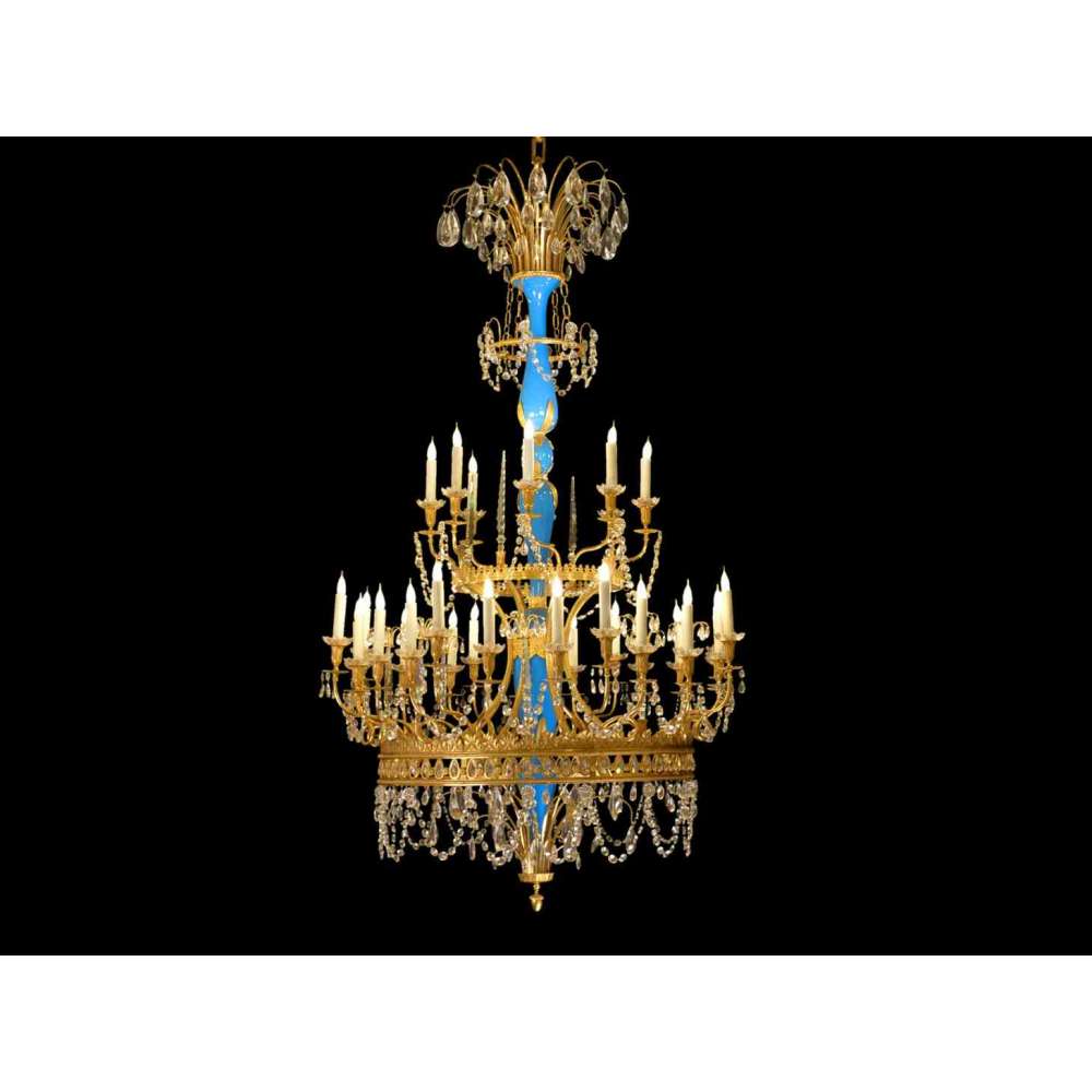 Żyrandol z czeskim kryształem i pozłacanym brązem 24K.