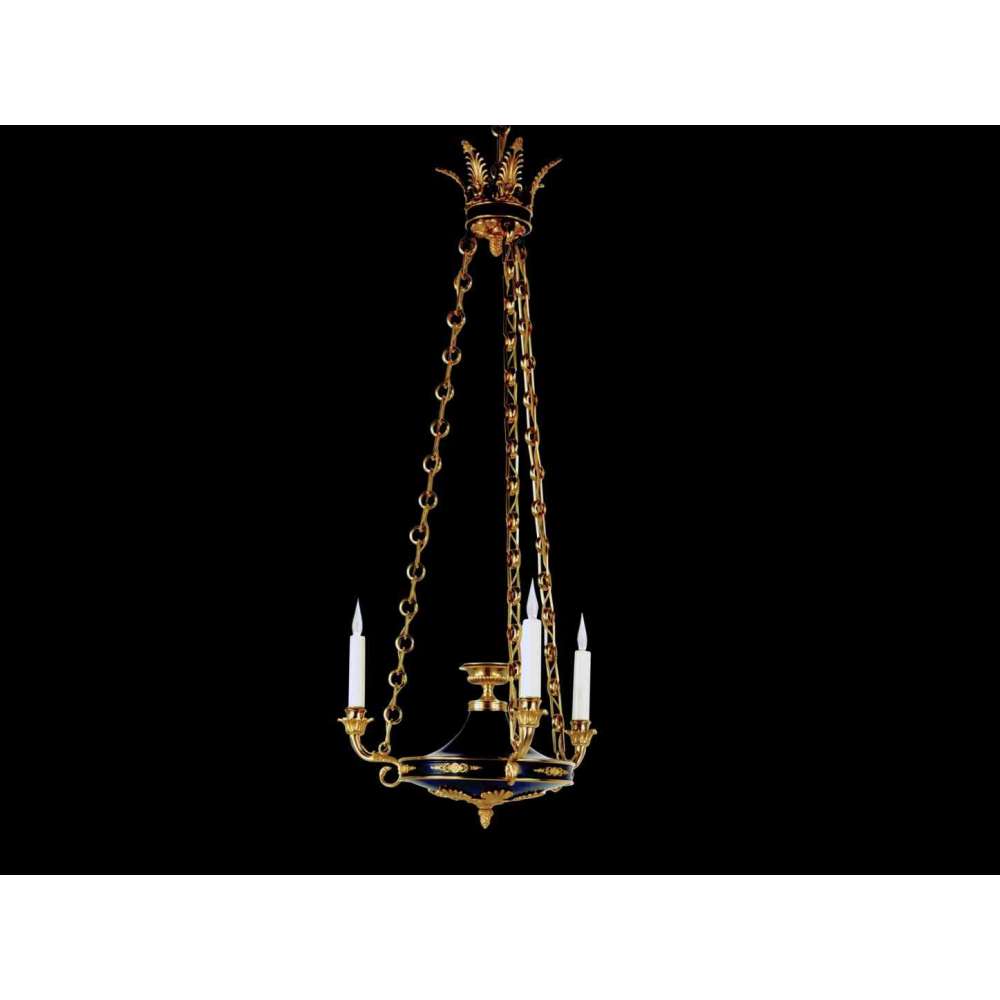 Żyrandol Directoire „Malmaison” z pozłacanym brązem 24K i zielonym wykończeniem.
