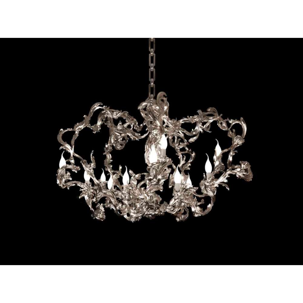 Żyrandol "Lisa" z jasnym niklowym wykończeniem na brązie.