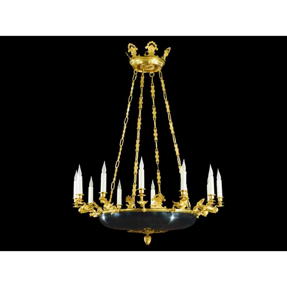 Żyrandol Empire z misą z lakierowanej blachy i pozłacanym brązem 24K. Światła: 12Zapisz się do naszego newslettera i otrzymuj oferty specjalne i rabaty dla stałych i nowych klientów! Wystarczy, że podasz nam swój adres e-mail i nie przegapisz już żadnej oferty!